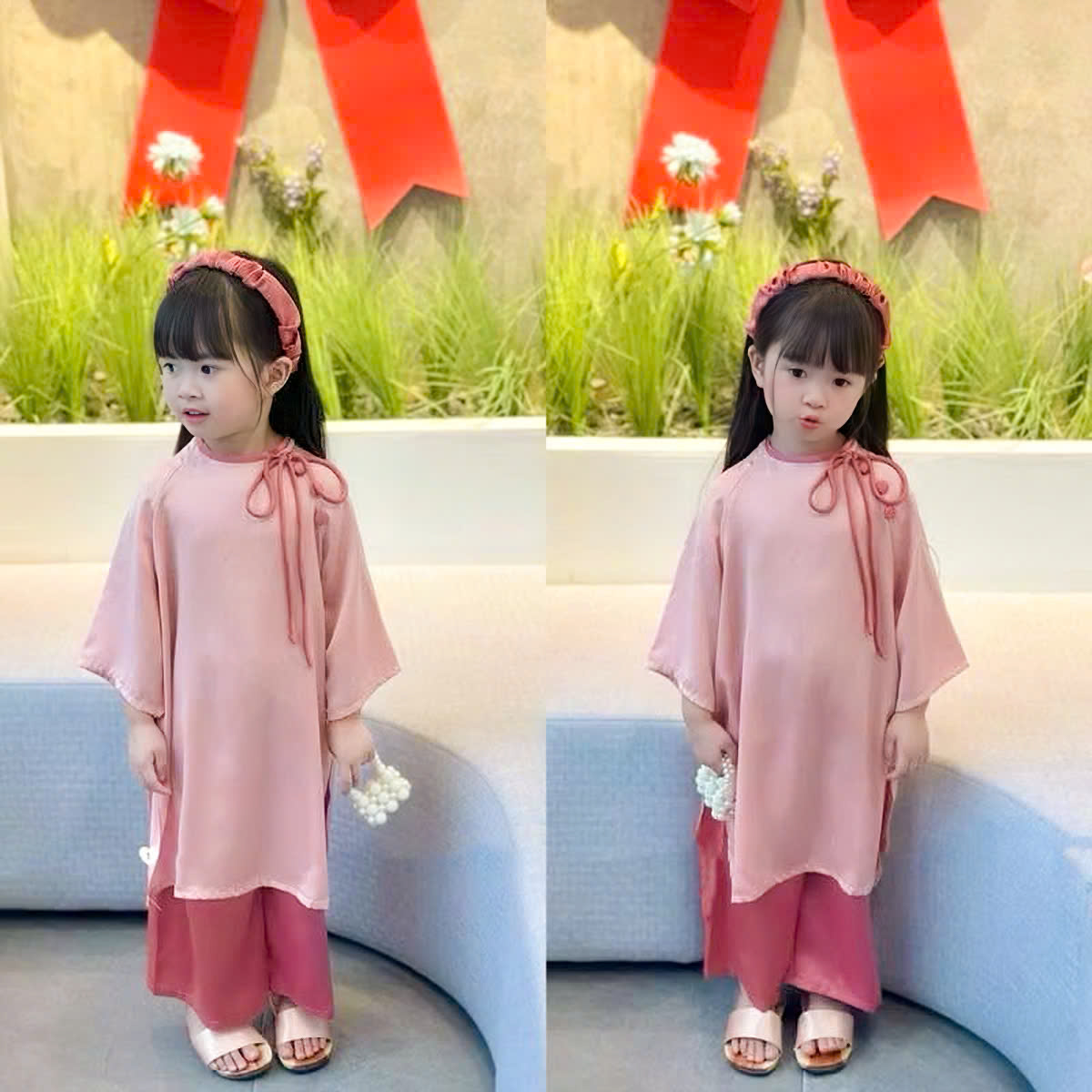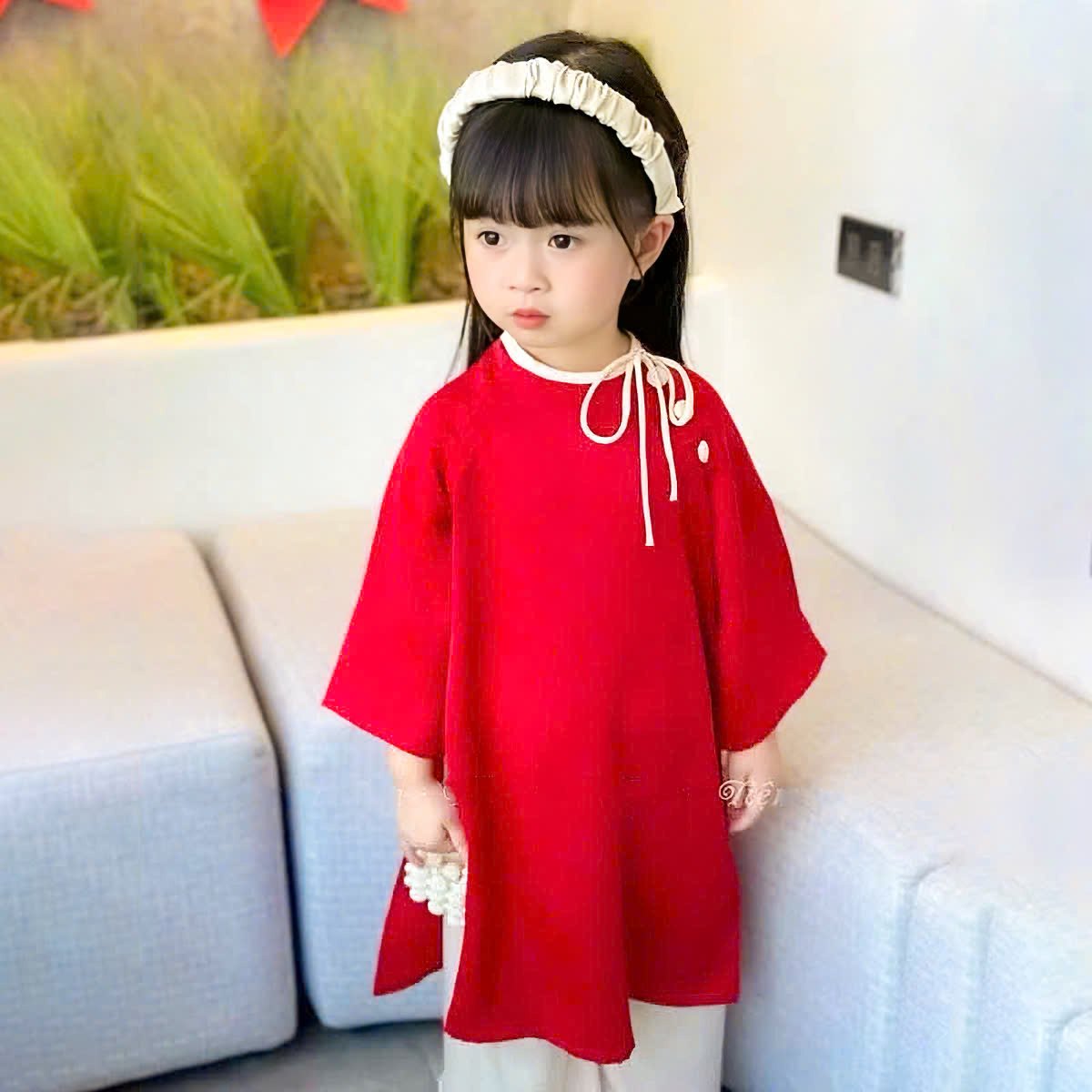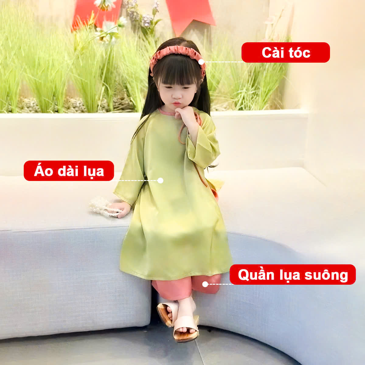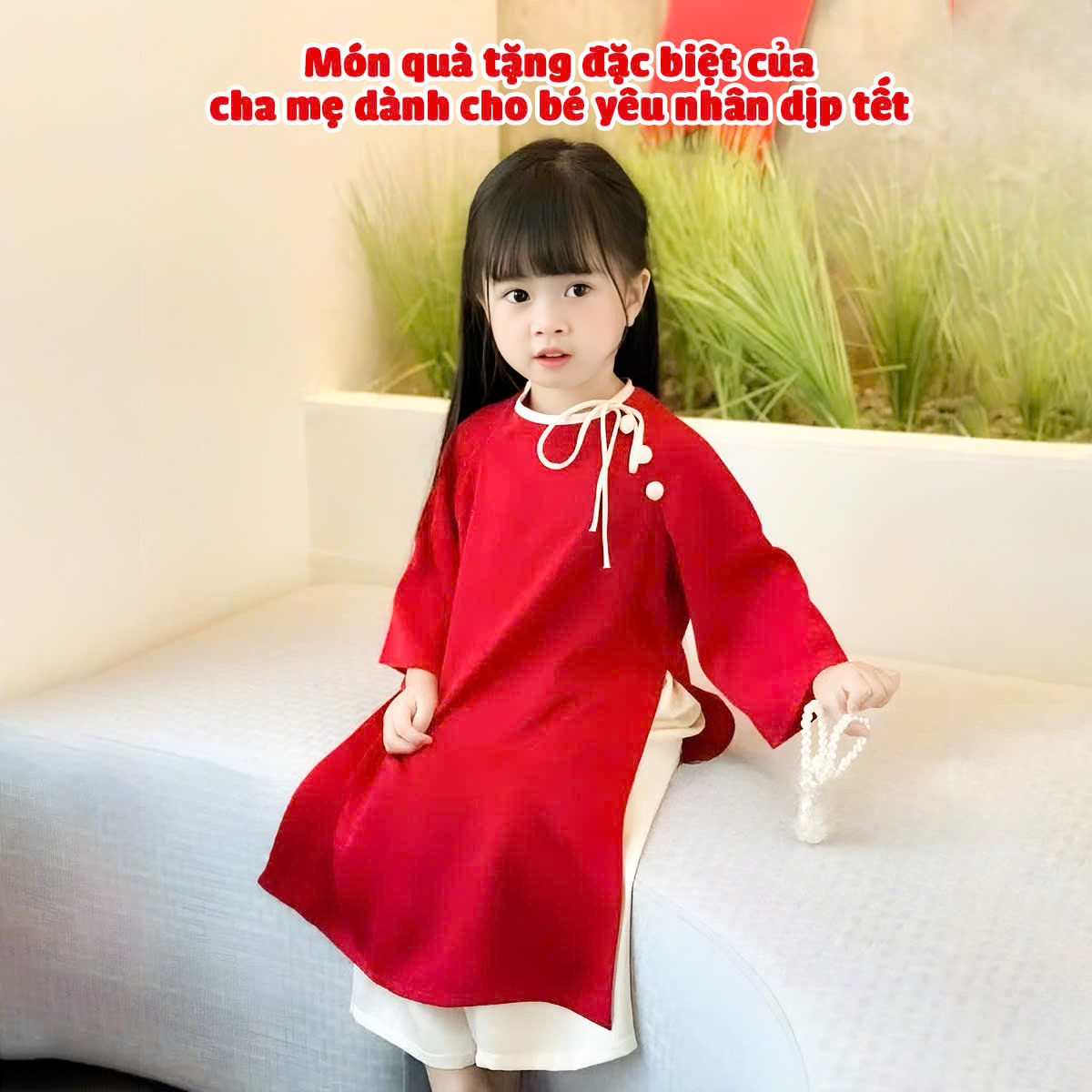 Áo dài bé gái 8-22kg chất lụa cao cấp tông màu Tết siêu đáng yêu phù hợp cho bé đi chơi các dịp lễ, Tết,…