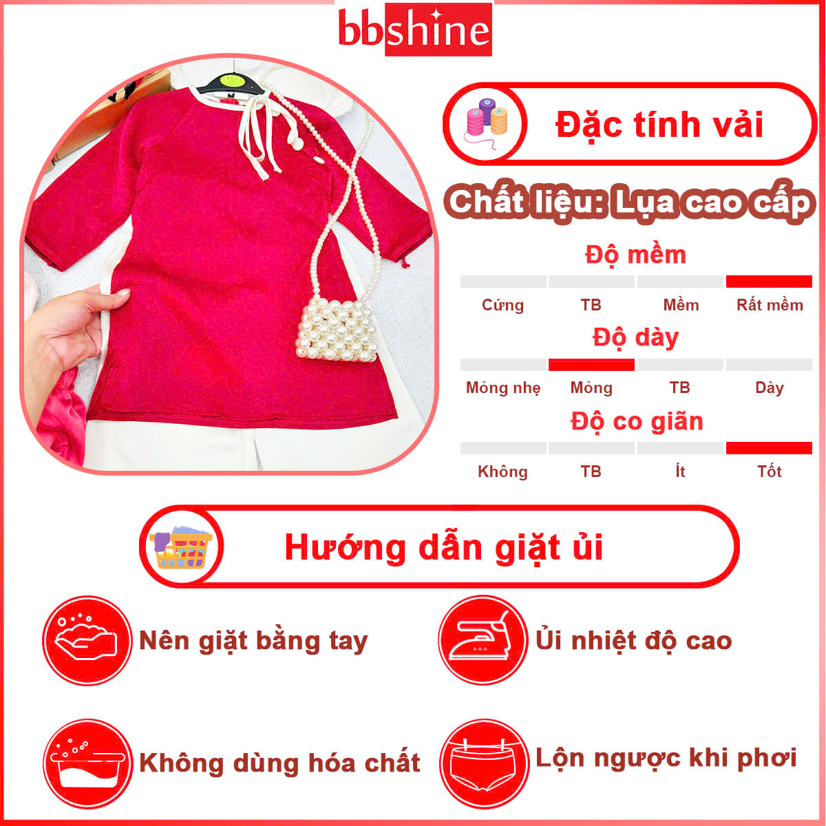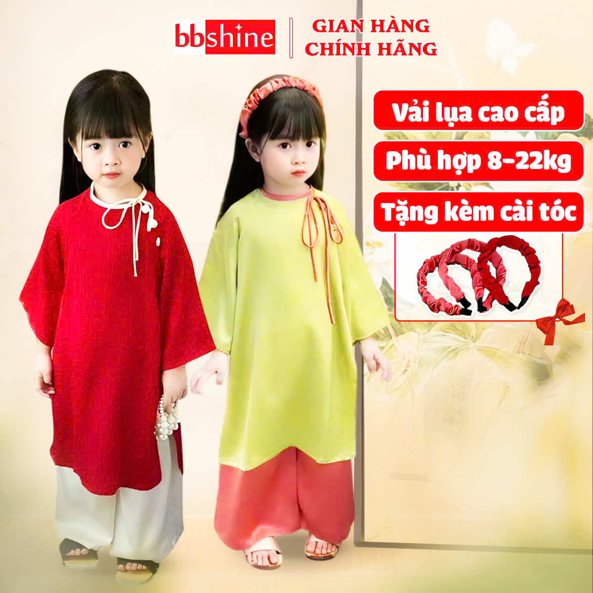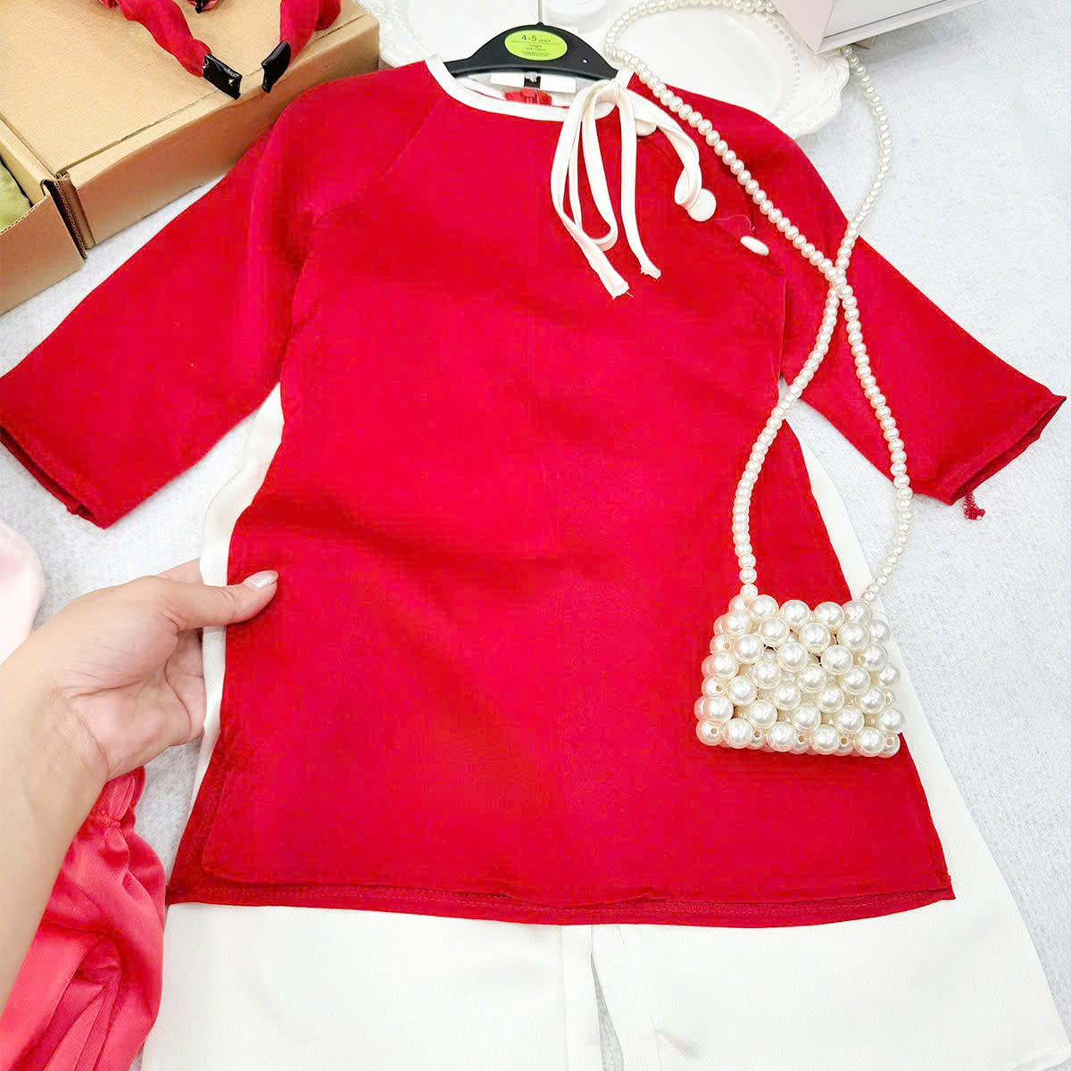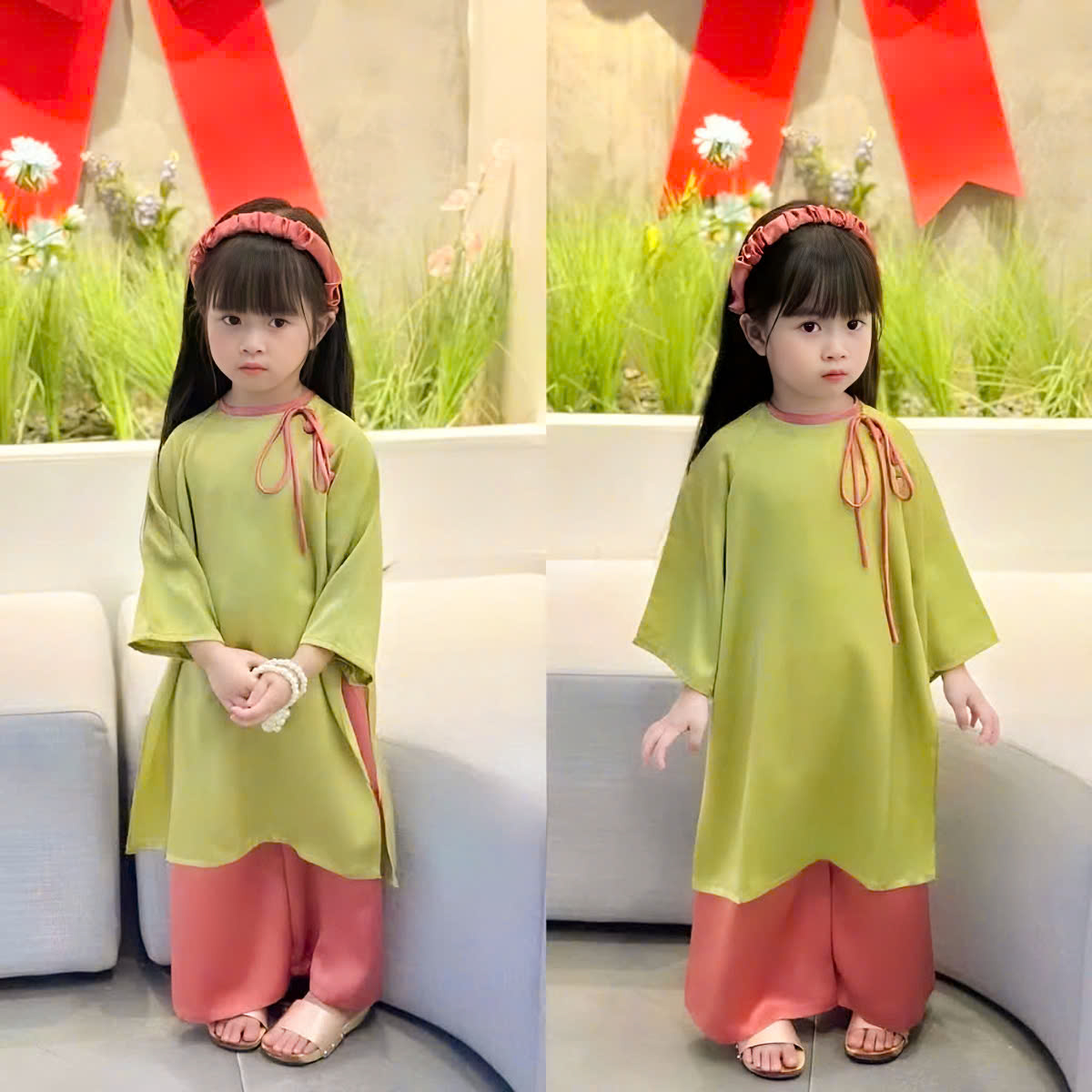 Áo dài bé gái 8-22kg chất lụa cao cấp tông màu Tết siêu đáng yêu phù hợp cho bé đi chơi các dịp lễ, Tết,…