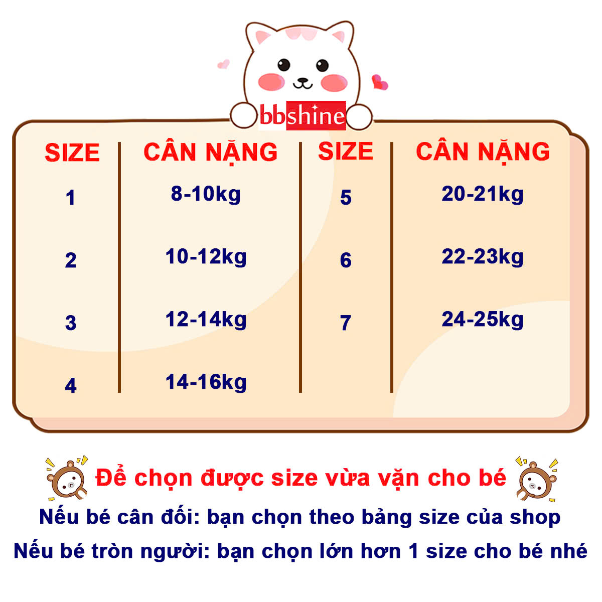 (Mẹ vui lòng chọn size theo cân nặng và chọn trừ hao lớn hơn 1 size cho bé mặc được thoải mái nhé)