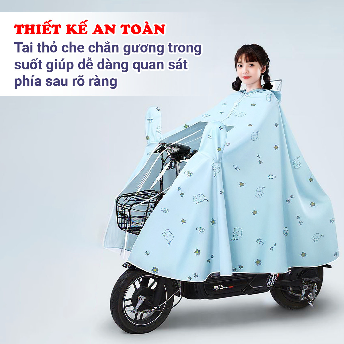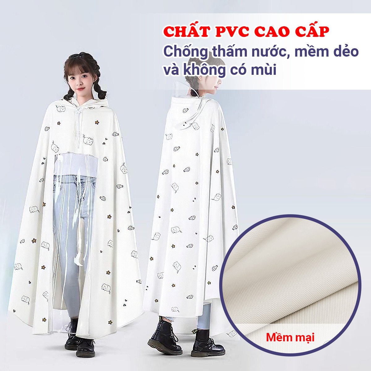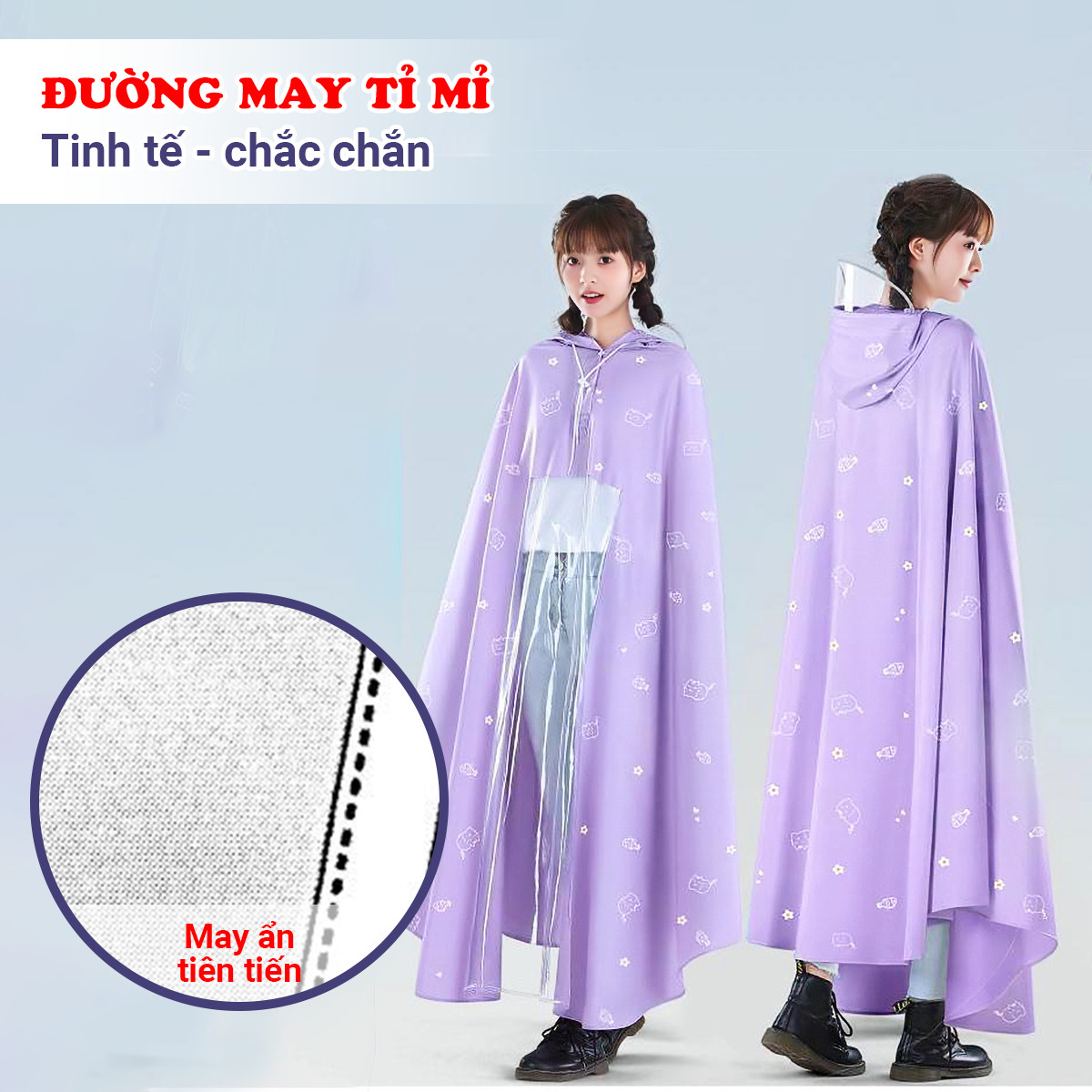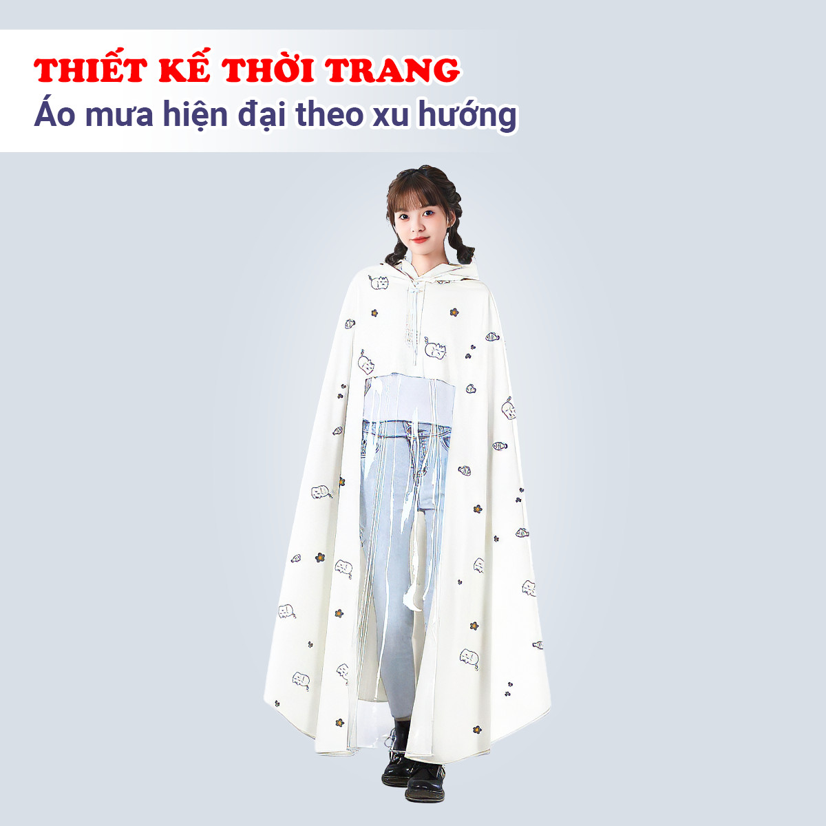- Thiết kế dáng áo cánh dơi sành điệu, không xẻ tà, thời trang hơn áo mưa truyền thống