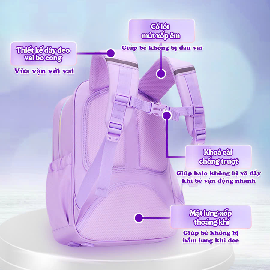 - Có khoá cài chống trượt, giúp balo không bị xô đẩy khi bé vận động nhanh