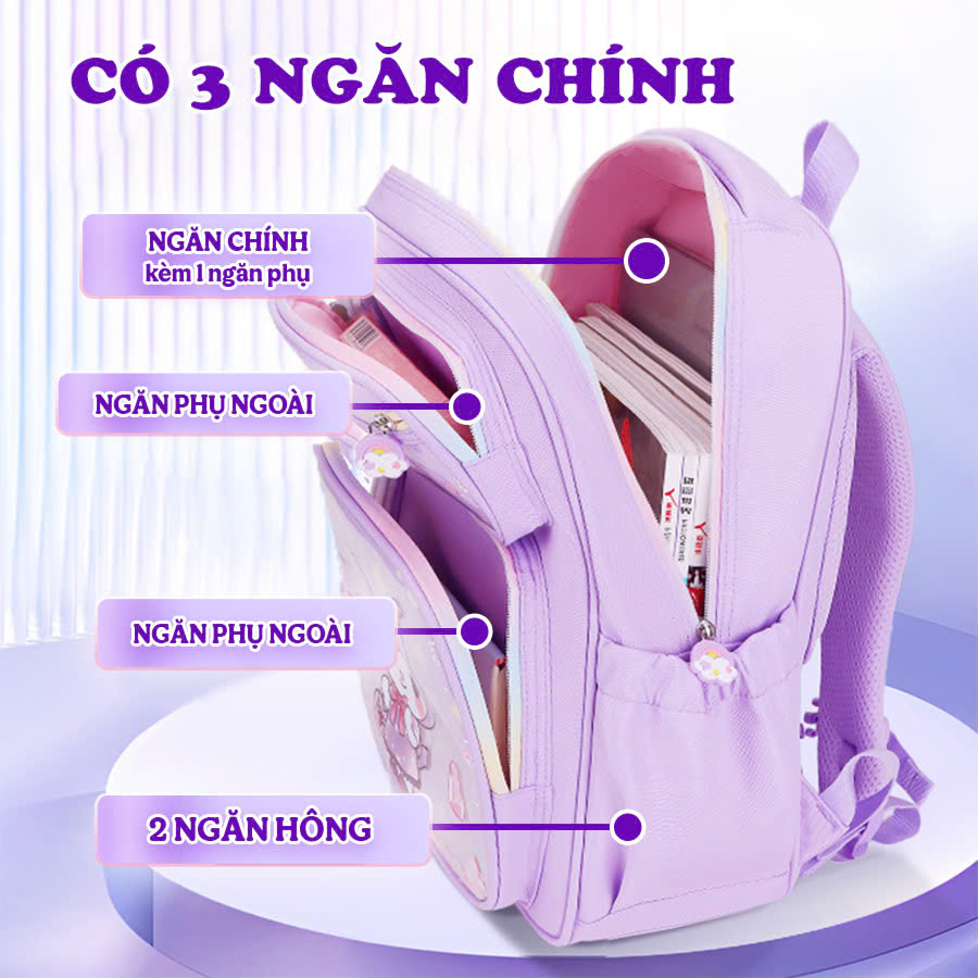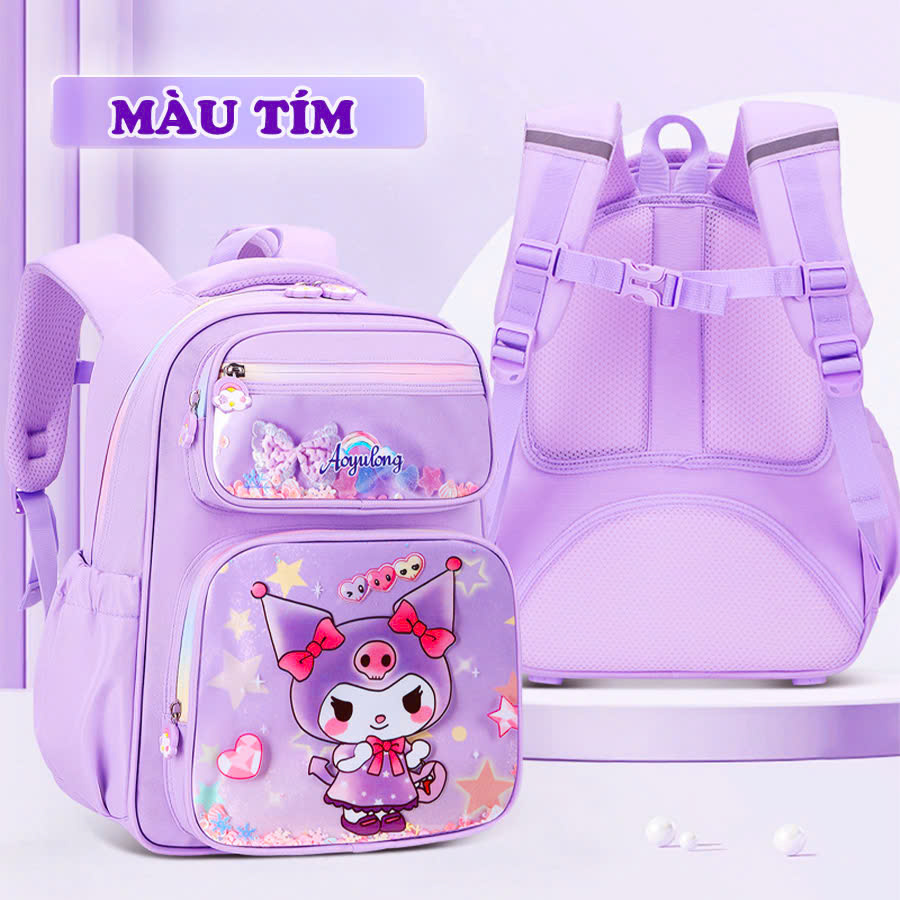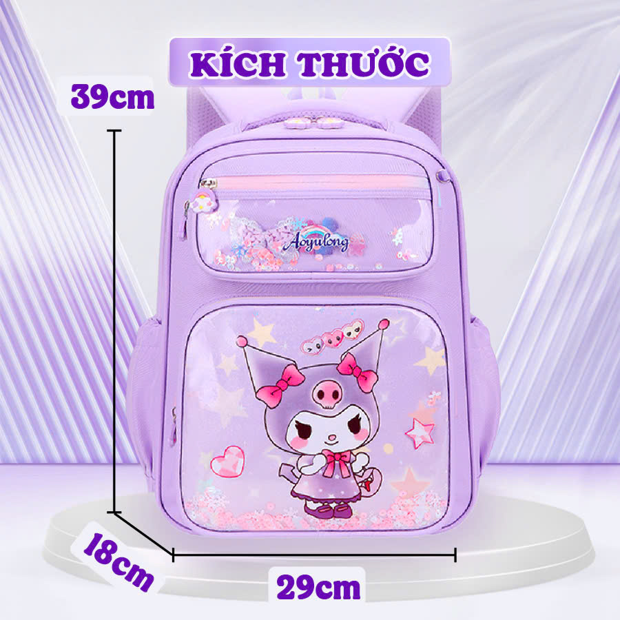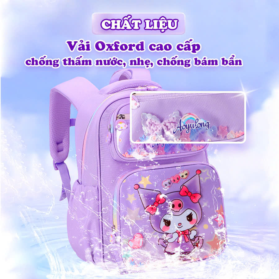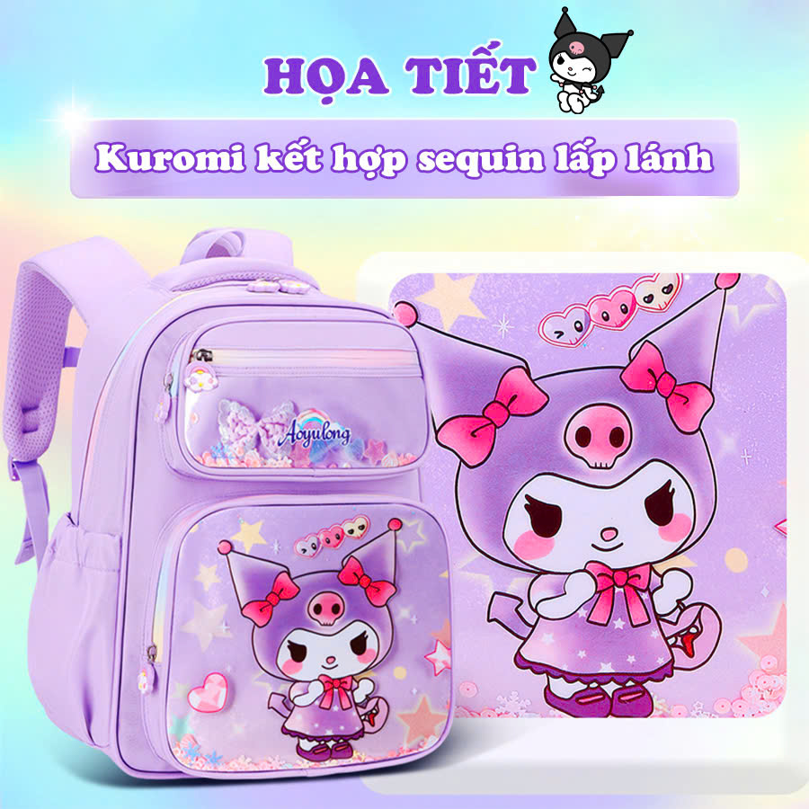 Balo cho bé, Balo đi học cấp 1 chống thấm nước cao cấp họa tiết Kuromi xinh yêu phù hợp mang đi học, đi du lịch, đi chơi…
