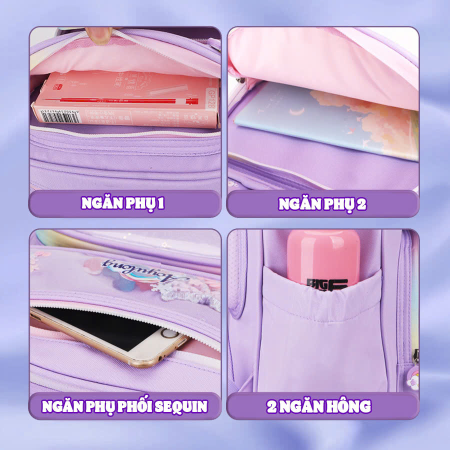 + 2 ngăn phụ mặt ngoài: Đựng được các vật dụng cá nhân cho bé