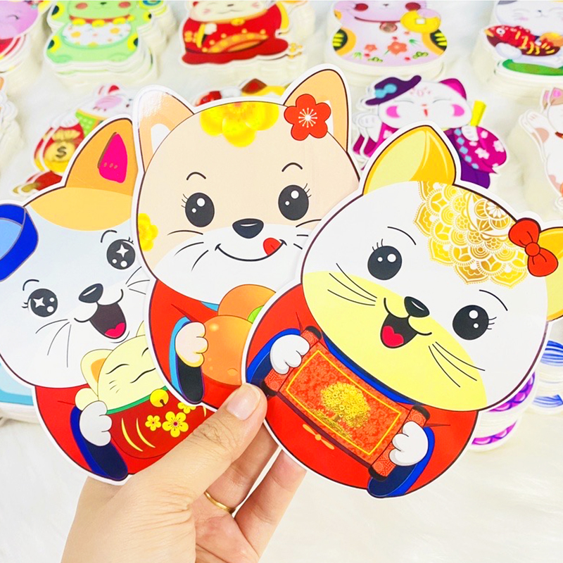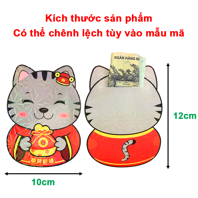 Bao lì xì, Bao lì xì Tết chibi 2024 cao cấp họa tiết hình mèo ngộ nghĩnh