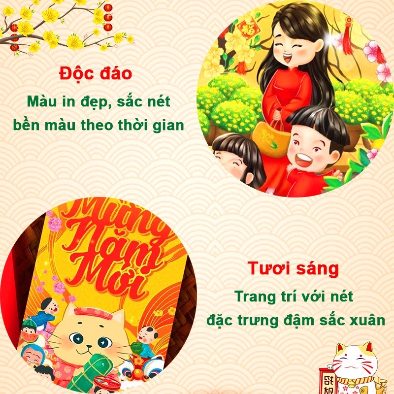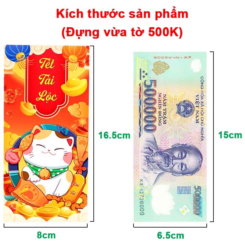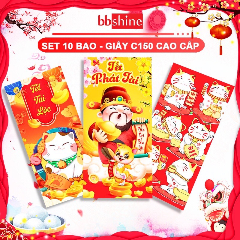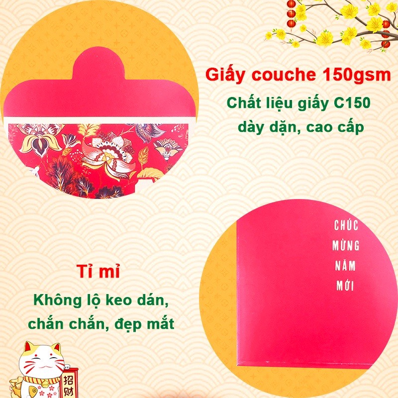 Bao lì xì, Set 10 bao lì xì Tết Giáp Thìn 2024 cao cấp dày dặn họa tiết in sắc nét