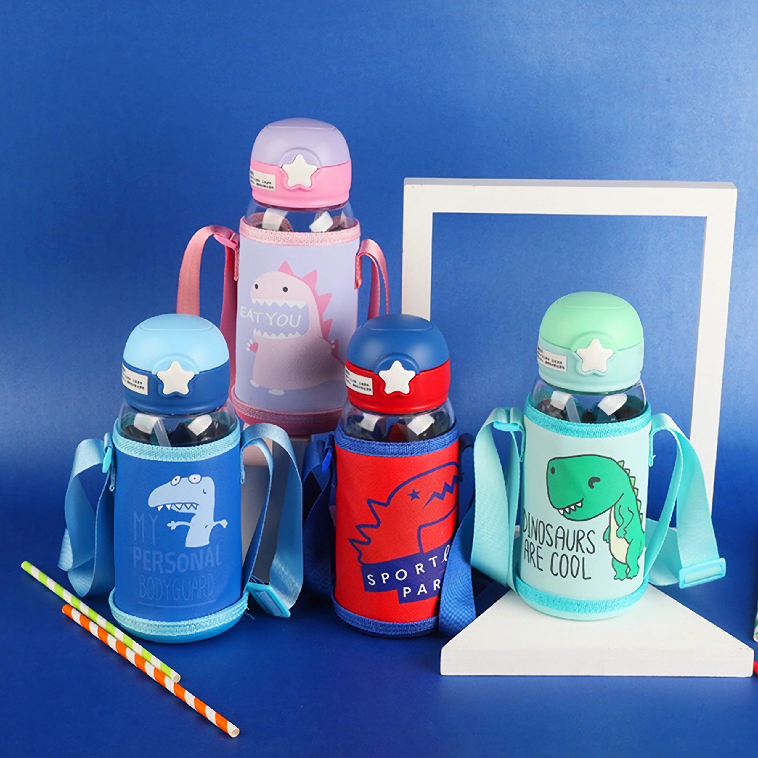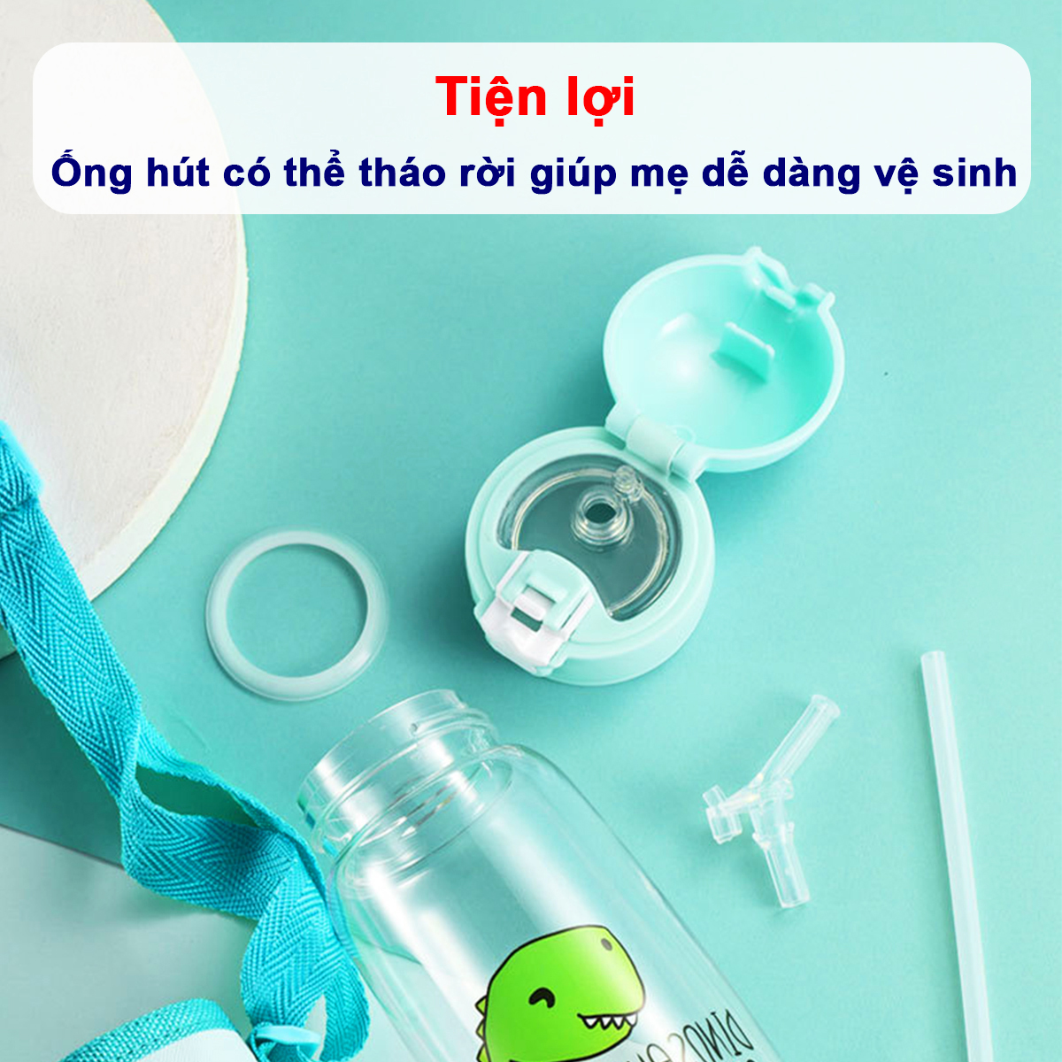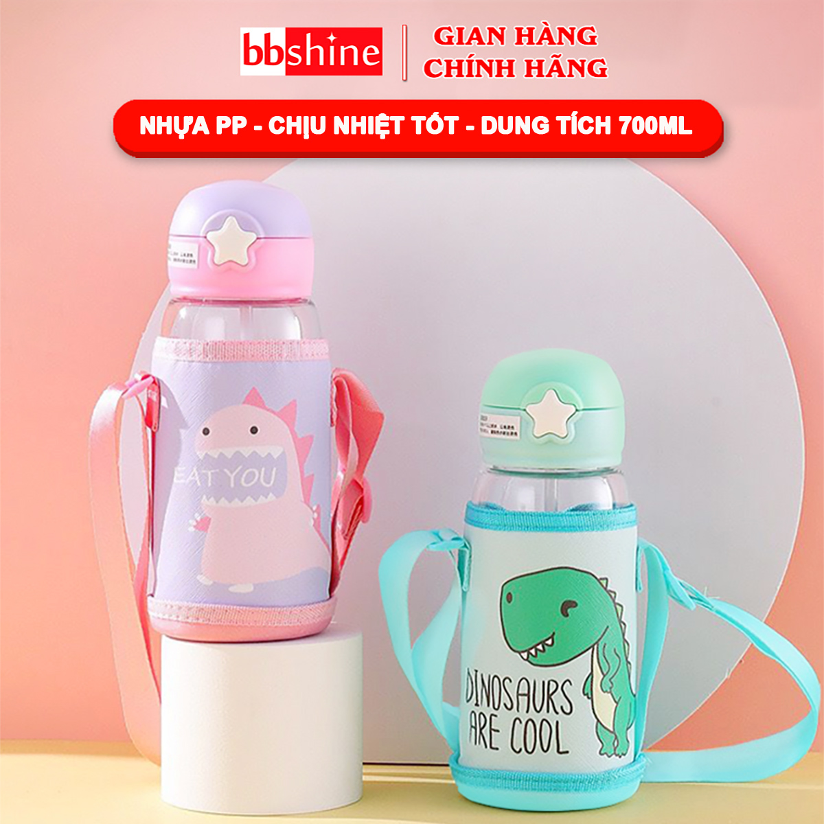 Bình nước cho bé đi học, Bình uống nước cho bé có ống hút 700ml bằng nhựa PP chịu nhiệt tốt tặng kèm túi và dây đeo tiện lợi phù hợp cho bé mang đi học, đi chơi, đi du lịch…