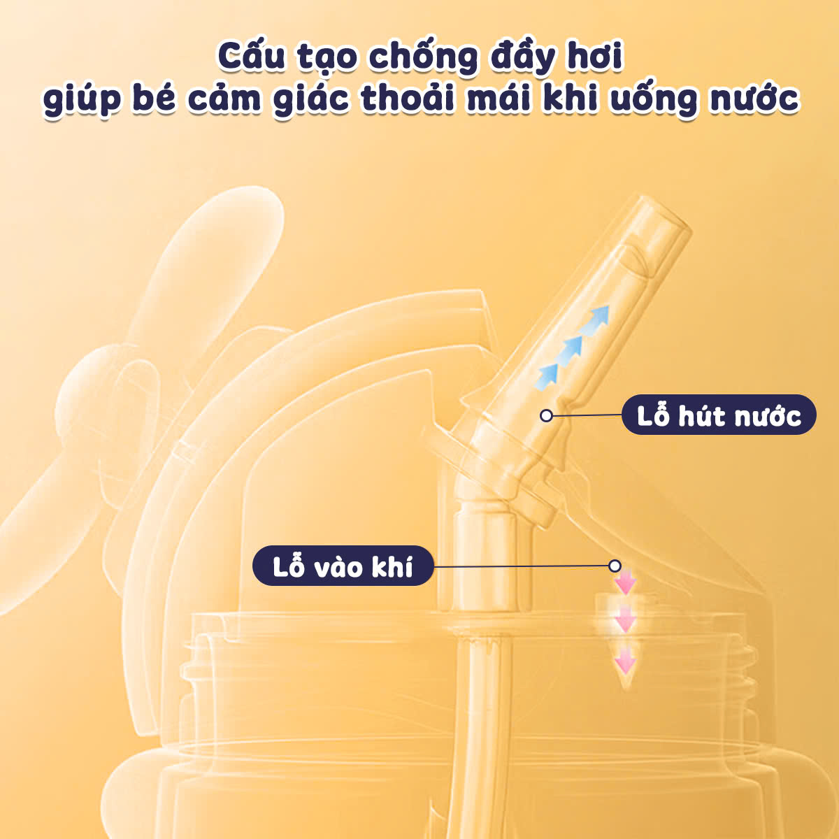 - Được thiết kế hiện đại có van chống sặc, giúp nước không bị đổ ra ngoài kể cả khi bé nằm