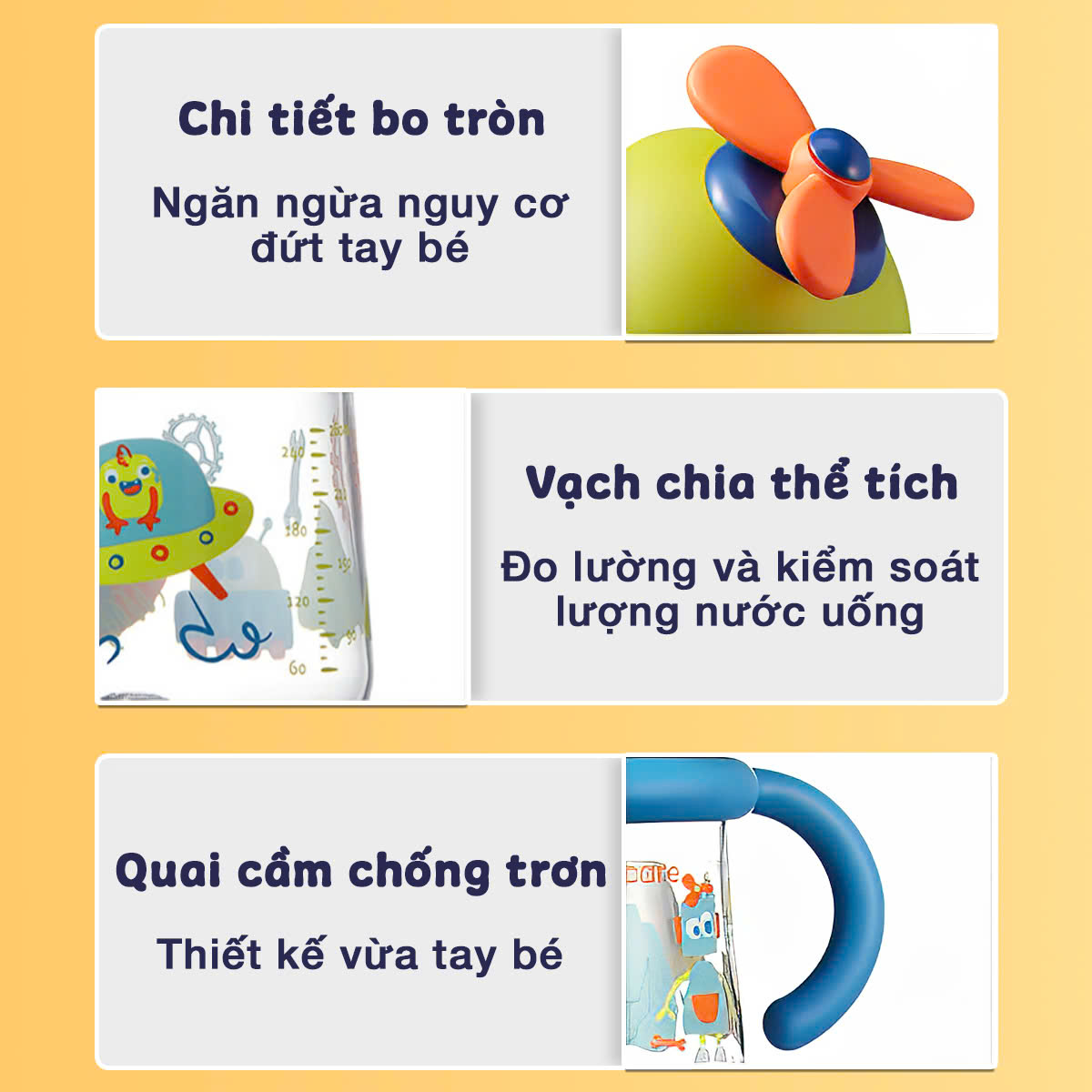 - Thiết kế hình chong chóng thông minh, xoay chỉ bằng 1cú chạm nhẹ, giúp bé thích thú khi uống nước