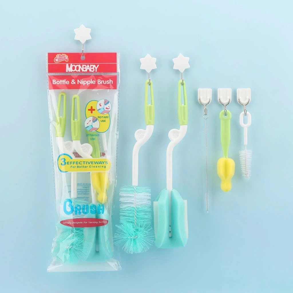 Bộ cọ rửa bình sữa với 5 món được thiết kế phù hợp với từng chi tiết bình sữa giúp mẹ vệ sinh nhanh hơn nhưng vẫn đảm bảo an toàn và sạch hết vết bẩn.