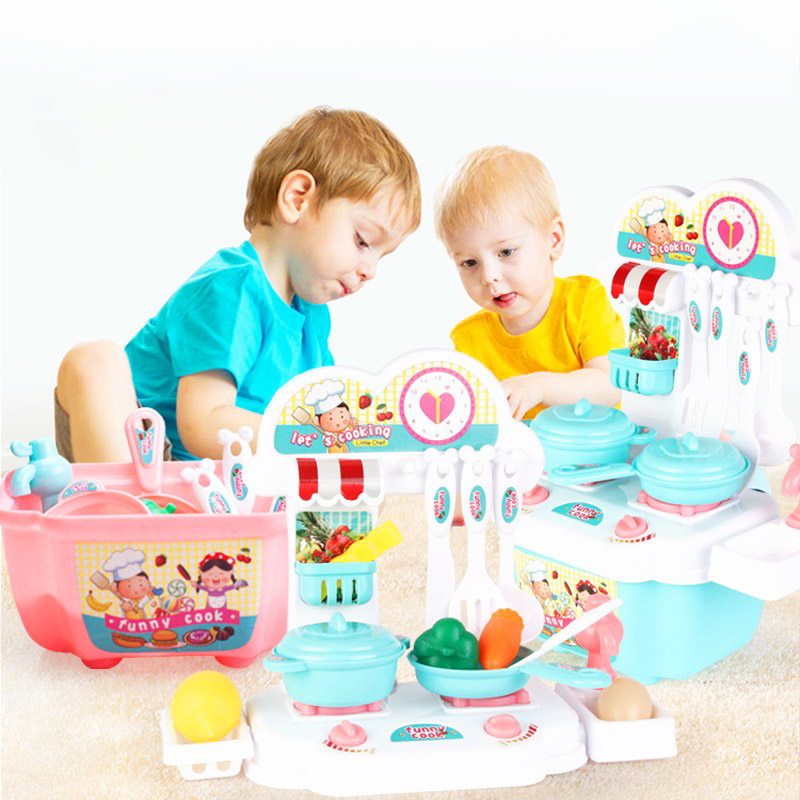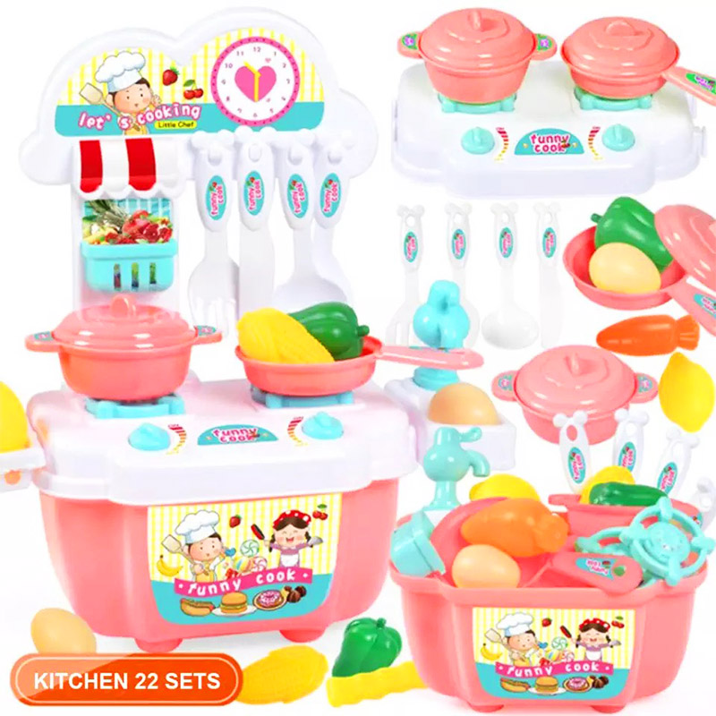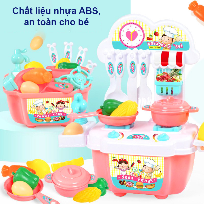 Bộ đồ chơi nấu ăn, Bộ nấu ăn cho bé 22 món kèm bàn bếp và tủ bếp bằng nhựa nguyên sinh ABS an toàn cho bé yêu