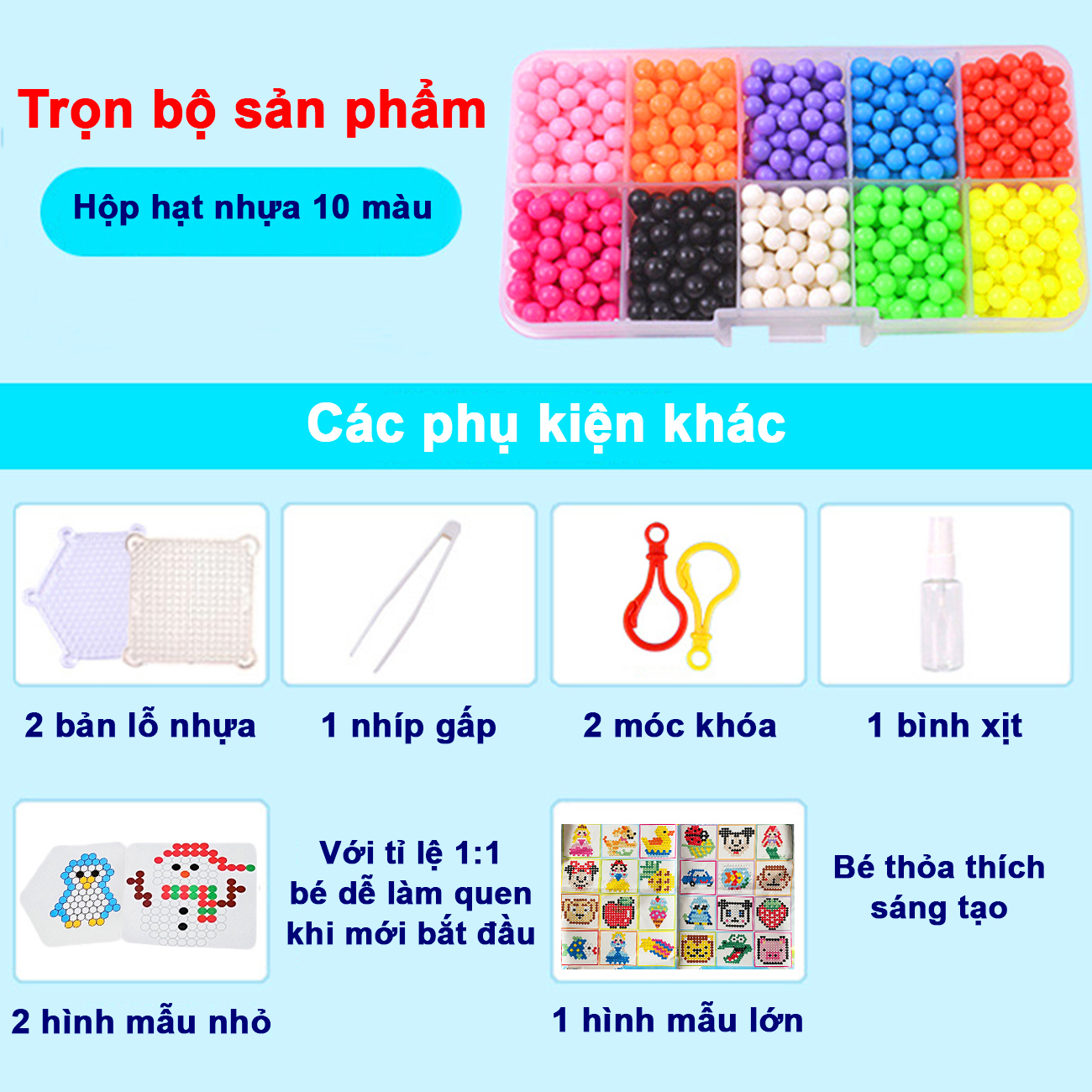 LƯU Ý: Hạt nhựa có phủ keo nên tuyệt đối để xa tầm tay trẻ nhỏ dưới 3 tuổi