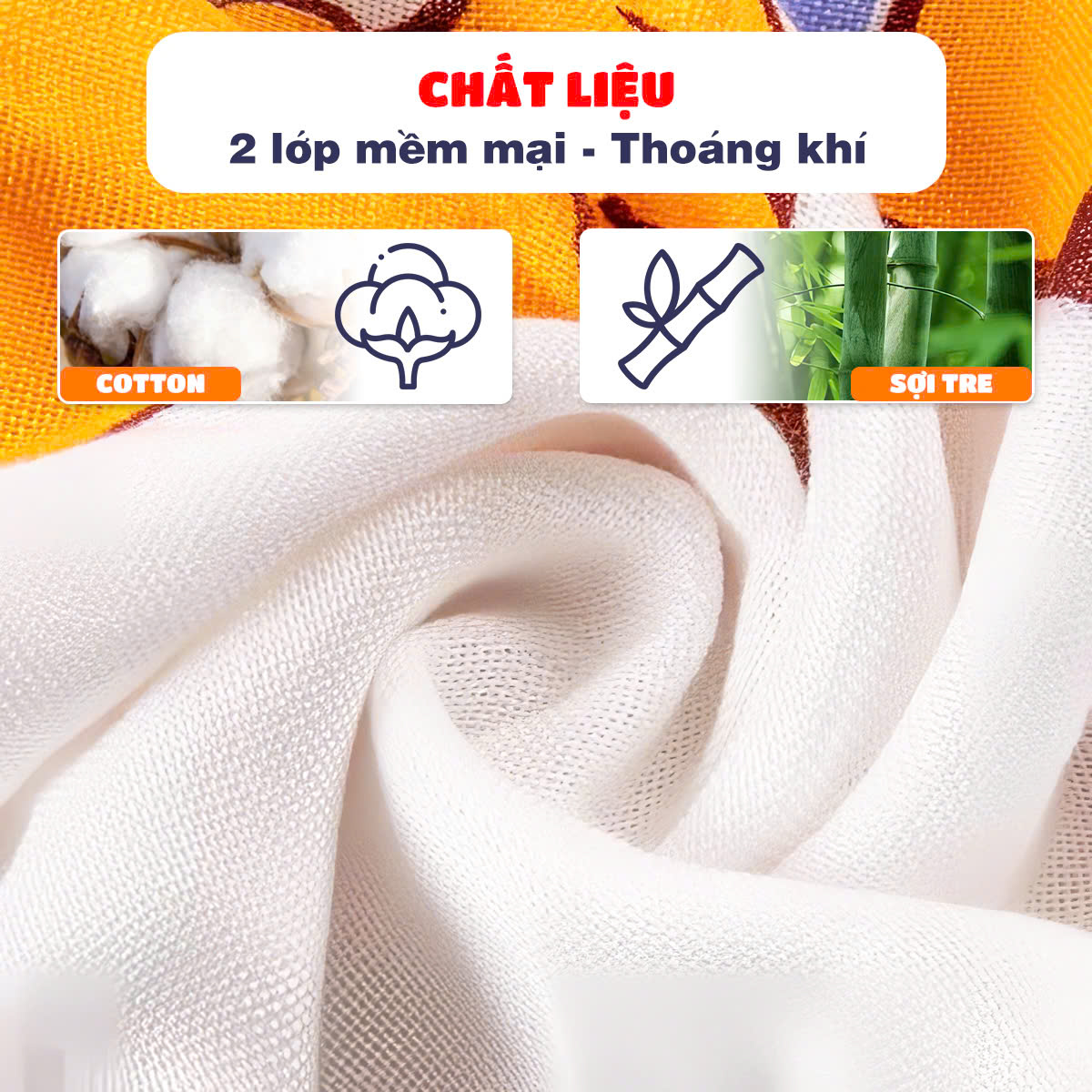 - Được làm từ vải cotton sợi tre 2 lớp mềm mại, thoáng khí