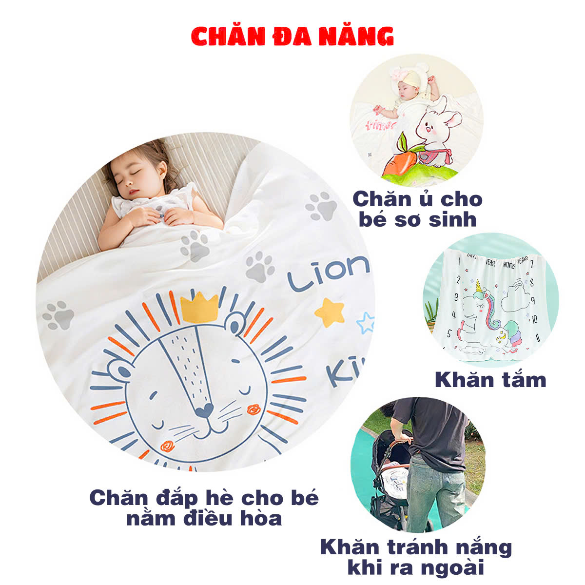 - Chăn đa năng có thể sử dụng làm chăn đắp hè cho bé nằm điều hòa, chăn ủ cho bé sơ sinh, khăn tắm...