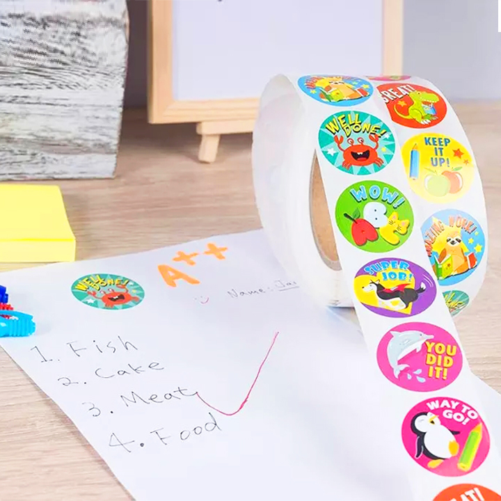 Cuộn 500 sticker khen thưởng tiếng Anh khích lệ tinh thần học tập cho bé yêu với nhiều họa tiết kèm slogan tiếng Anh thú vị khiến những giờ học thêm sinh động
