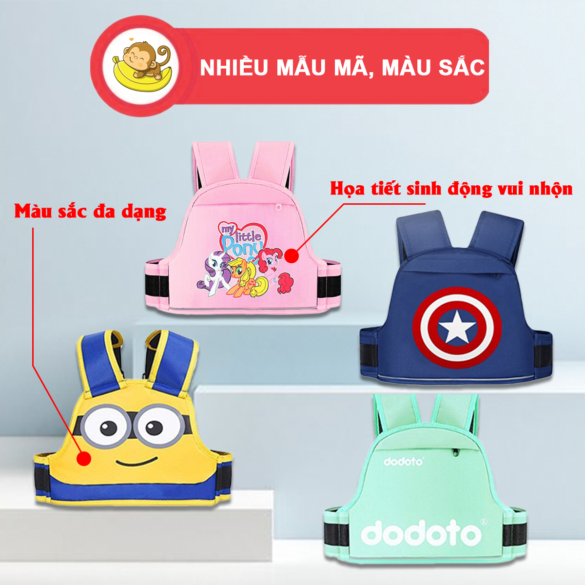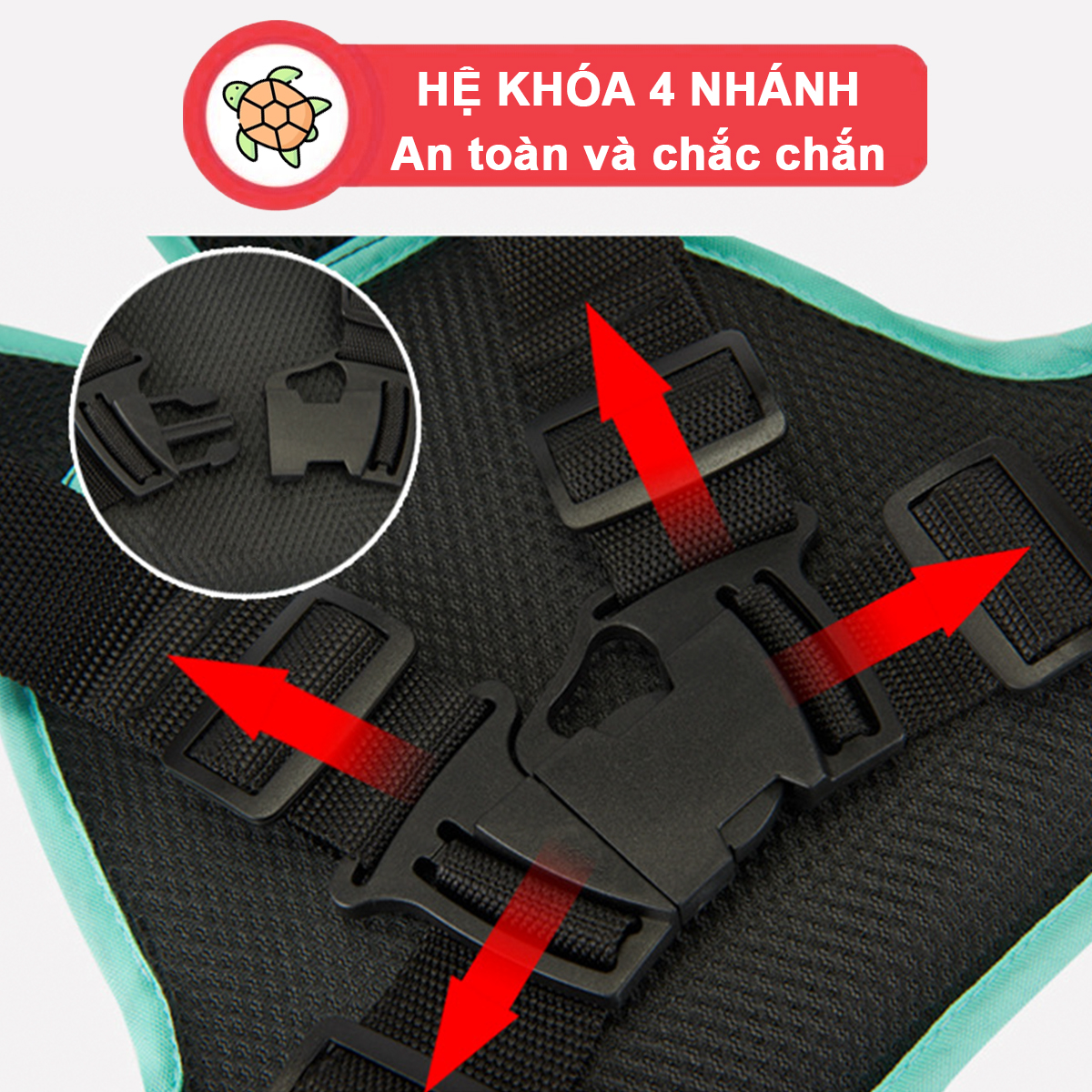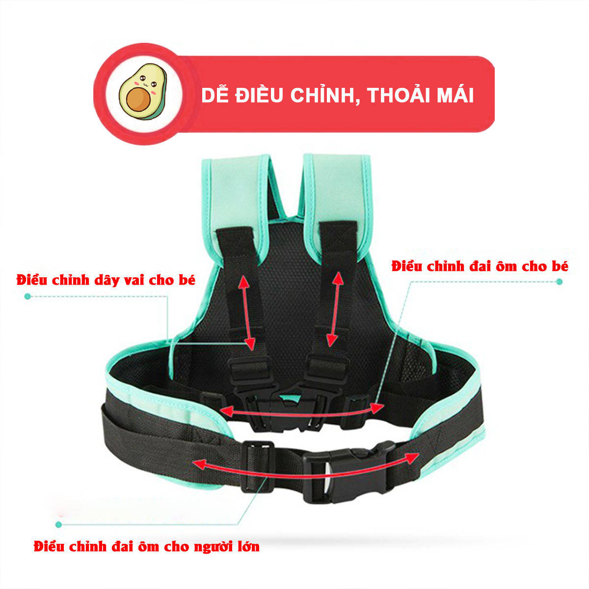 Đai đi xe máy cho bé, Đai xe máy an toàn cho bé 1-10 tuổi cao cấp, chắc chắn thoáng khí có túi đựng đồ tiện lợi