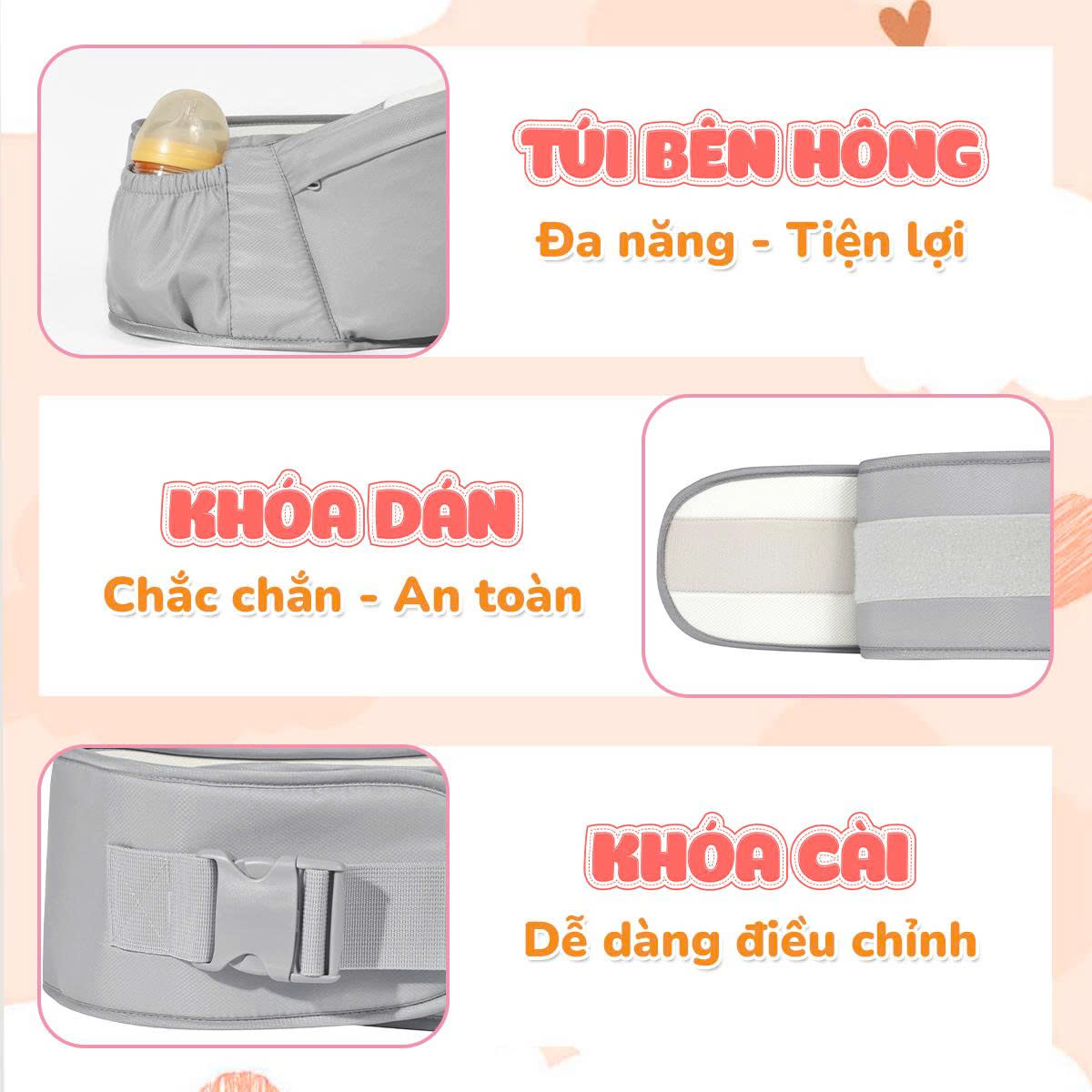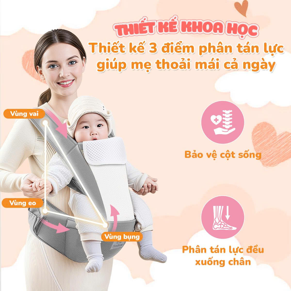 Địu em bé 0-2 tuổi chống gù đa năng 9 tư thế vải lưới thoáng mát an toàn cho bé yêu