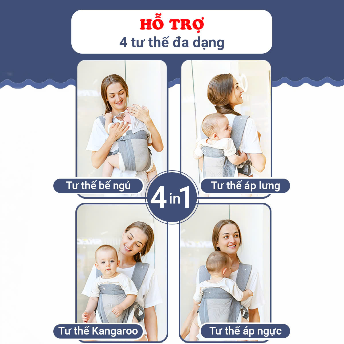 Địu em bé, Địu cho bé 3-36 tháng đa năng 4 tư thế gọn nhẹ thoáng khí cao cấp là một sản phẩm địu với thiết kế linh hoạt, dễ sử dụng, phù hợp cho nhiều nhu cầu khác nhau của ba mẹ, cùng nhiều tính năng hỗ trợ giá trị khác
