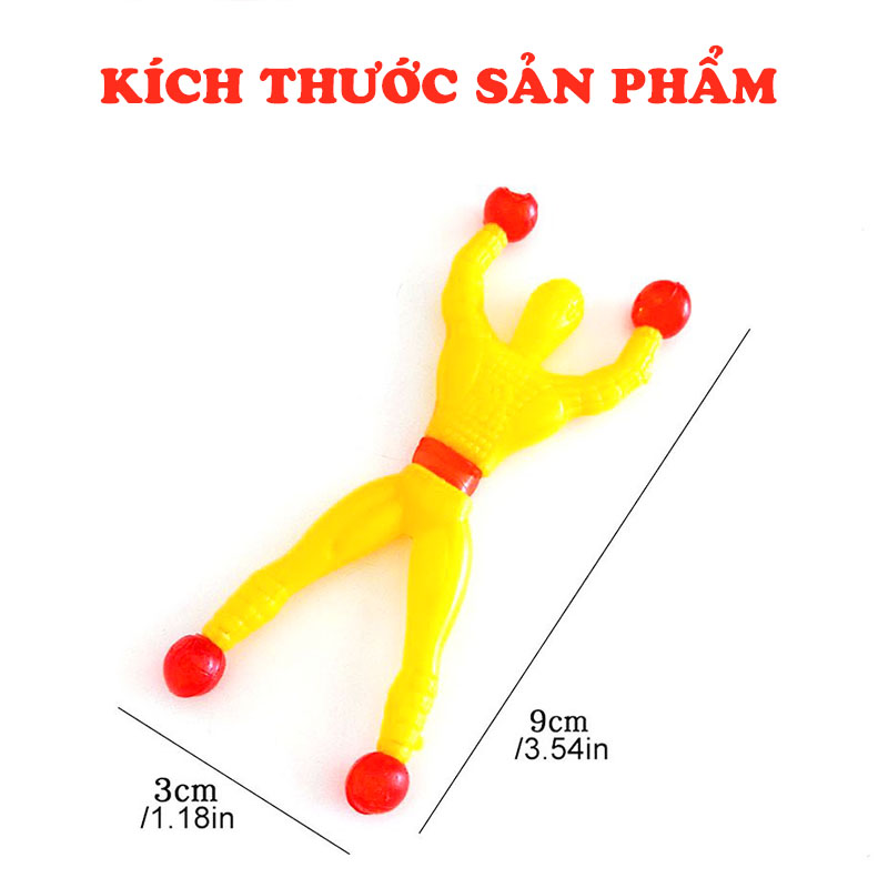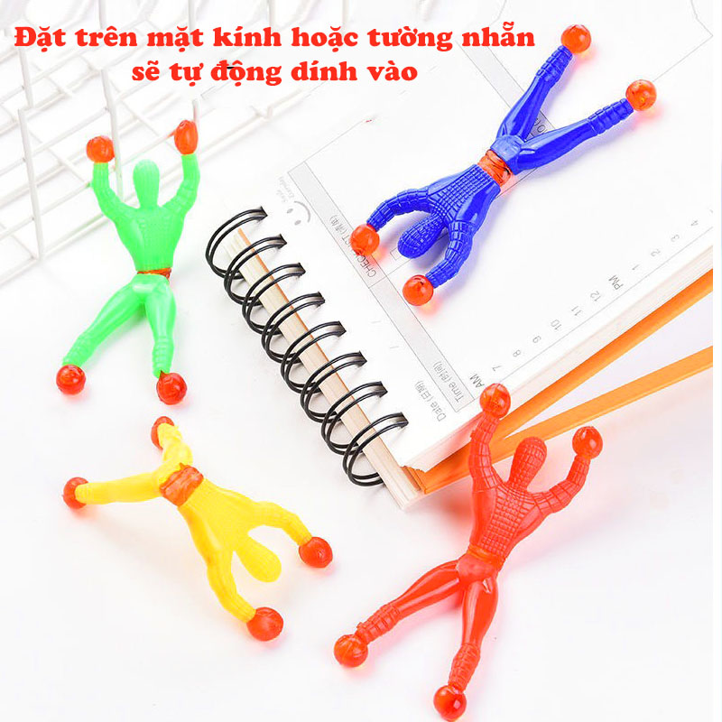- Đồ chơi người nhện leo tường được thiết kế hai đầu bàn tay và bàn chân là những hạt màu đỏ mềm mại, đặt trên mặt kính hoặc tường nhẵn sẽ tự động dính vào.
