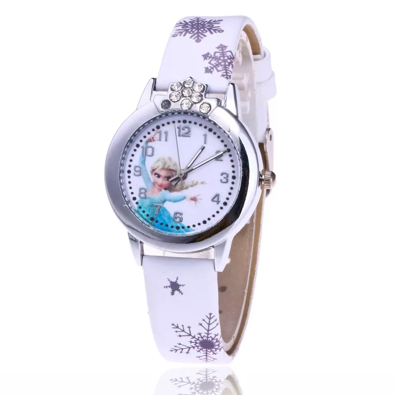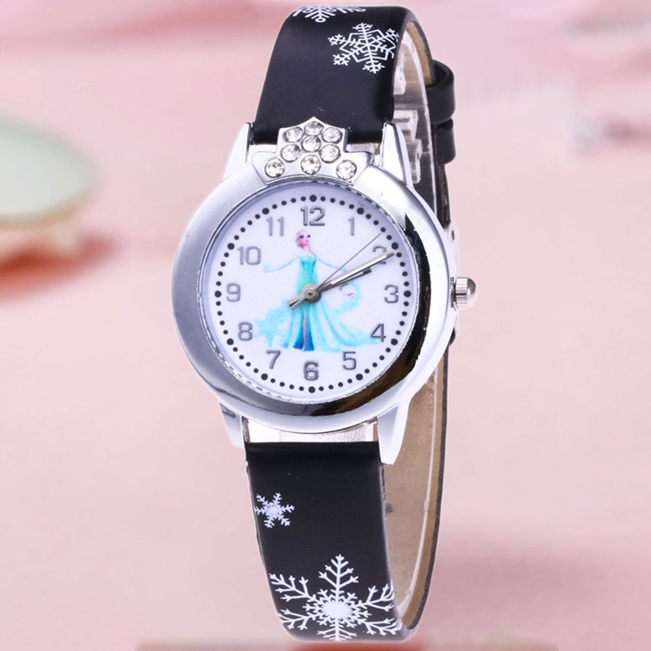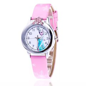 Hoạ tiết: Mặt đồng hồ hình Elsa & Anna xinh xắn – Dây đeo phối bông tuyết làm sáng tay bé khi mang