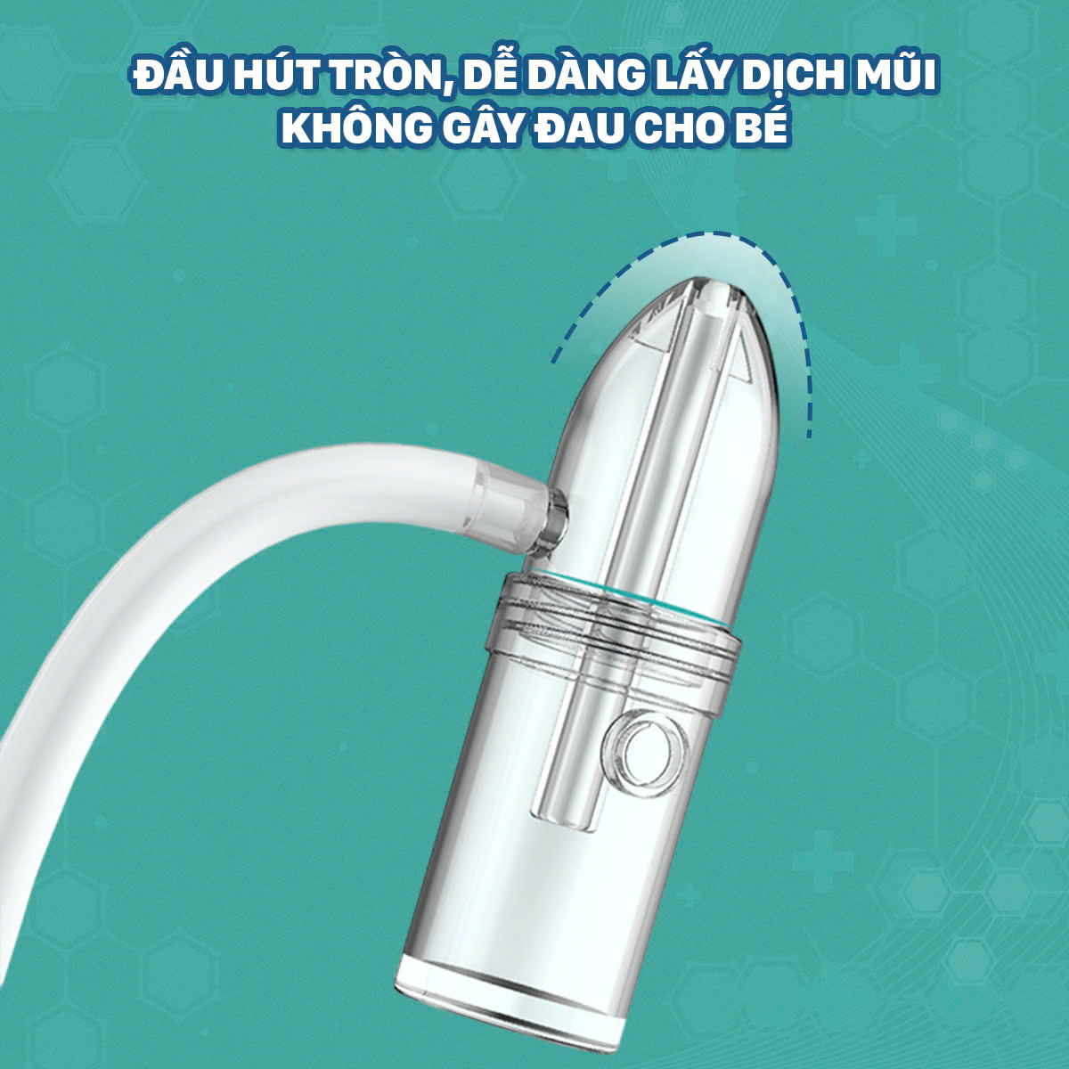- Được trang bị đầu hút mũi có thiết kế đặc biệt, giúp dễ dàng tiếp cận và hút sạch chất nhầy trong mũi mà không gây khó chịu hay tổn thương niêm mạc mũi của bé
