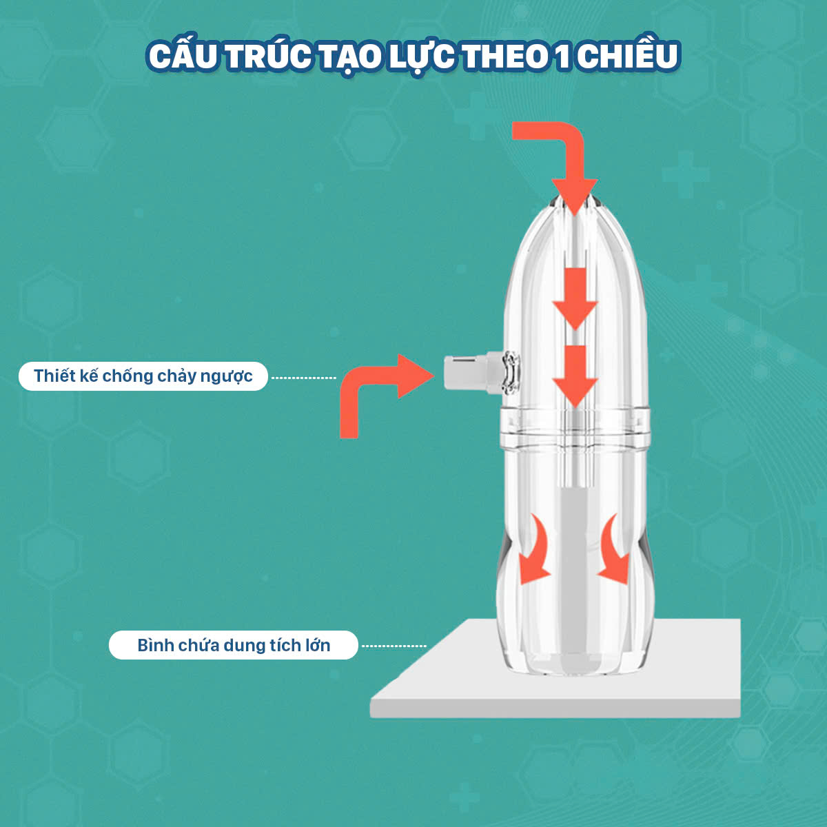 - Được trang bị bình chứa chất nhầy có thiết kế chống trào ngược, đảm bảo chất nhầy được hút ra sẽ được giữ lại trong bình chứa mà không bị trào ngược lại, giữ cho quá trình hút mũi luôn sạch sẽ và vệ sinh