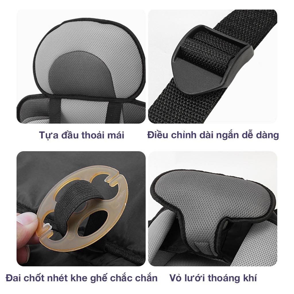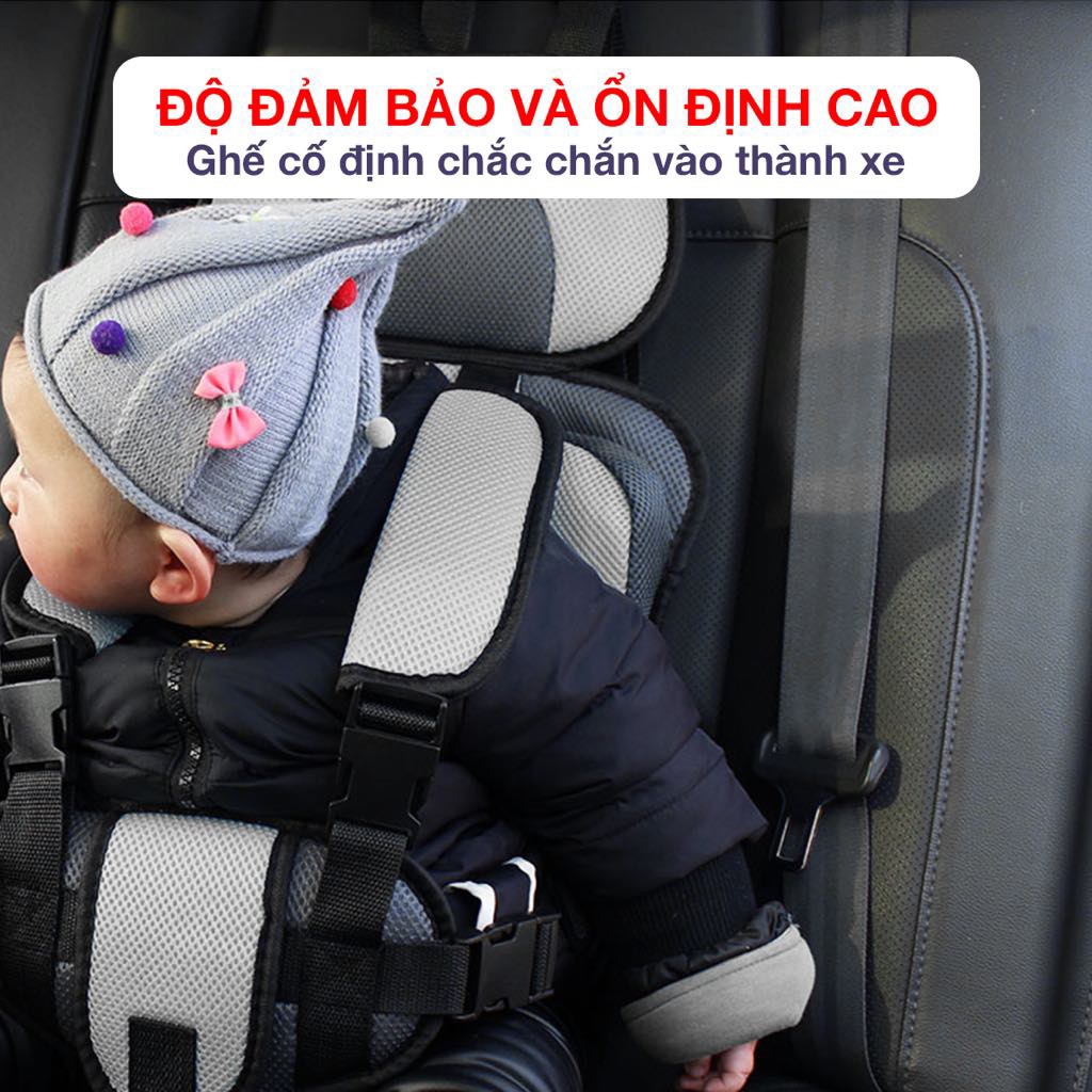 - Ghế được cố định chắc chắn vào thành xe nhờ hệ thống dây đai chéo 4 góc phía trên và dây ngang phía dưới, đảm bảo độ ổn định cao