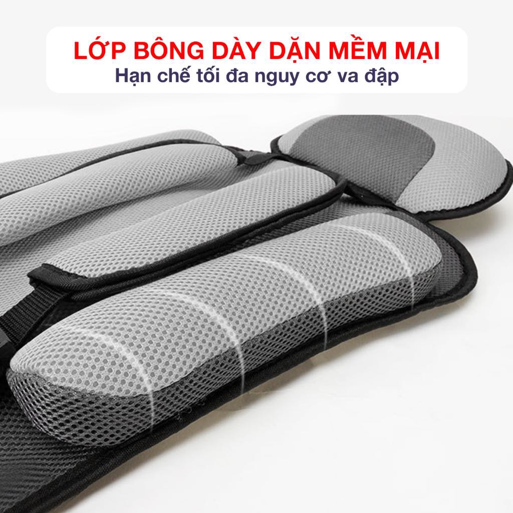 - Phần tựa đầu lớn có lớp bông dày dặn mềm mại, hỗ trợ nâng đỡ đầu và cổ bé, hạn chế tối đa nguy cơ va đập