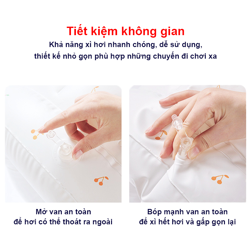 - Ghế hơi tập ngồi cho bé được thiết kế nhỏ gọn, phù hợp trong những chuyến đi chơi xa của cả nhà hoặc khi không dùng đến có thể tháo van hơi và gấp gọn lại