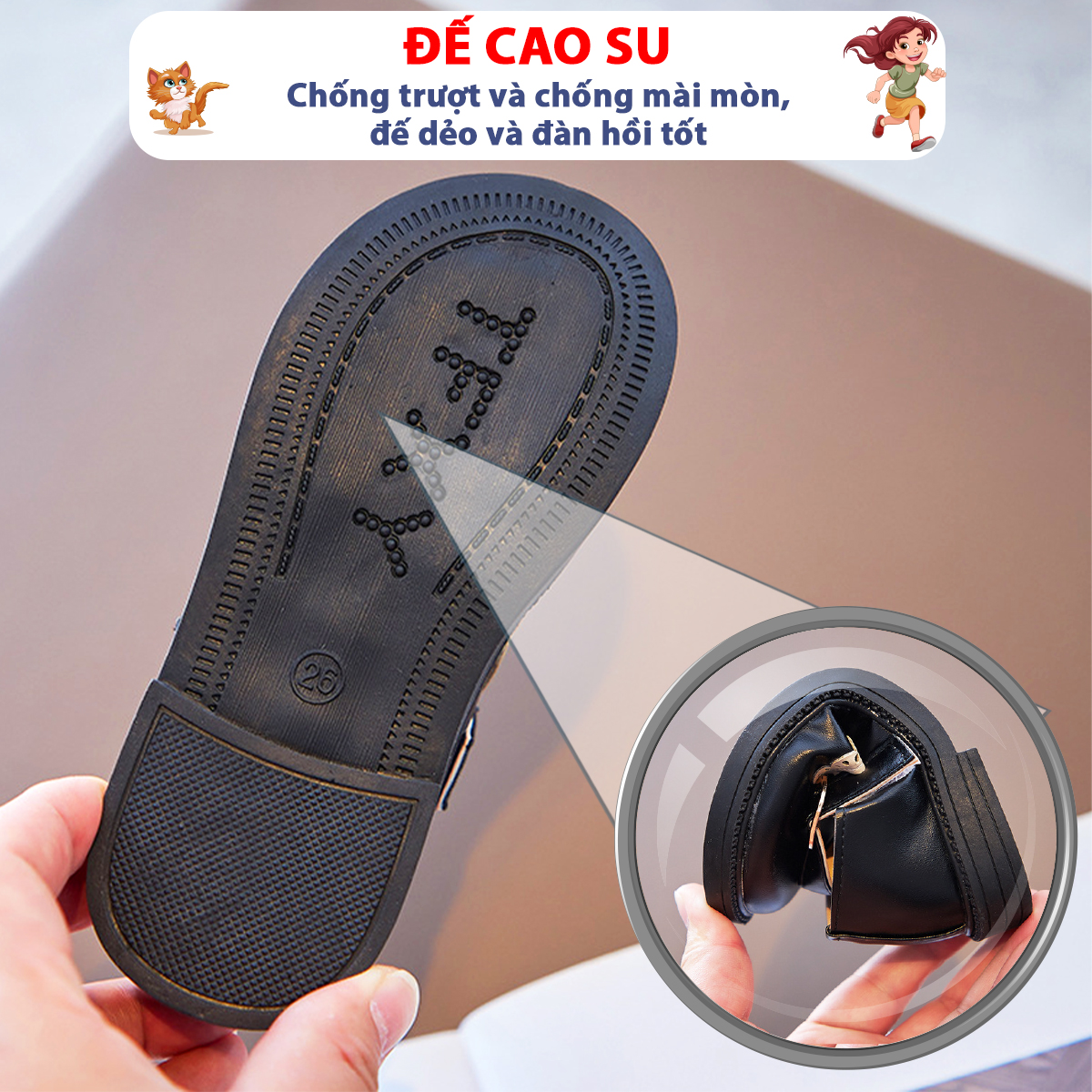 - Giày búp bê có đế được thiết kế sóng tạo độ ma sát, chống trơn trượt giúp bé chạy nhảy mà không lo bị ngã