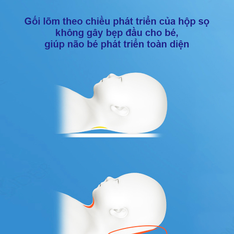 – Gối lõm theo chiều phát triển của hộp sọ không gây bẹp đầu cho bé, giúp não bé phát triển toàn diện nhất