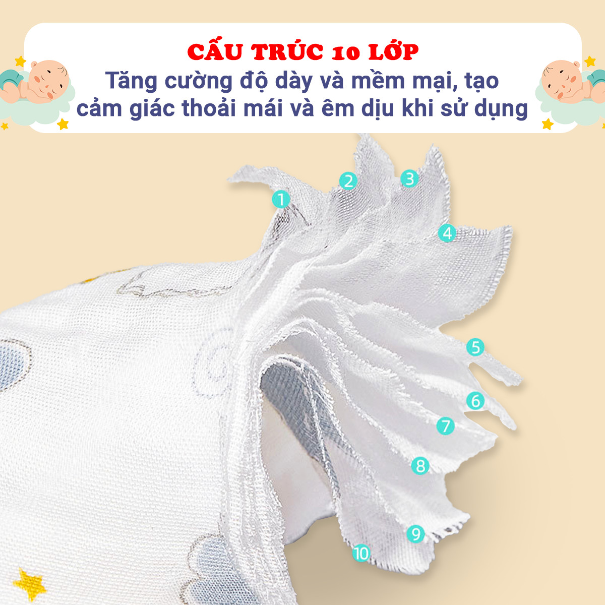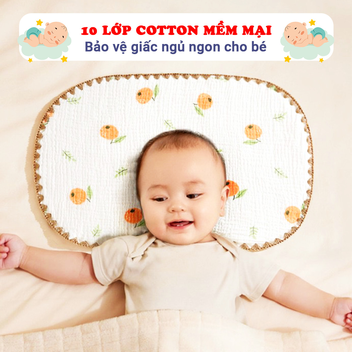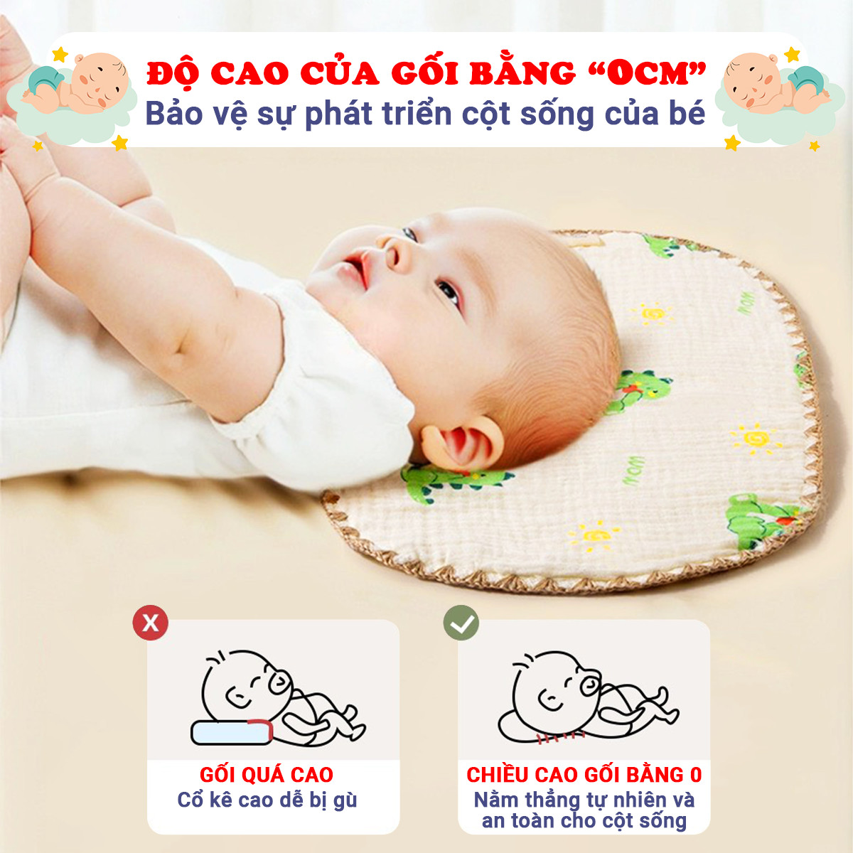 Gối cho bé sơ sinh, Gối xô sơ sinh 10 lớp mềm mại cao cấp cho bé nhiều họa tiết đáng yêu