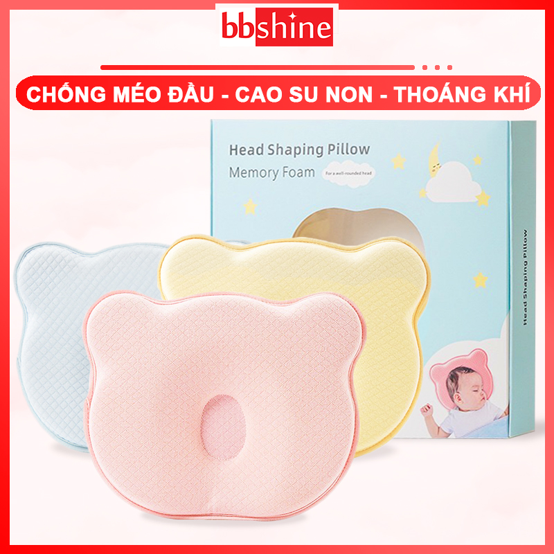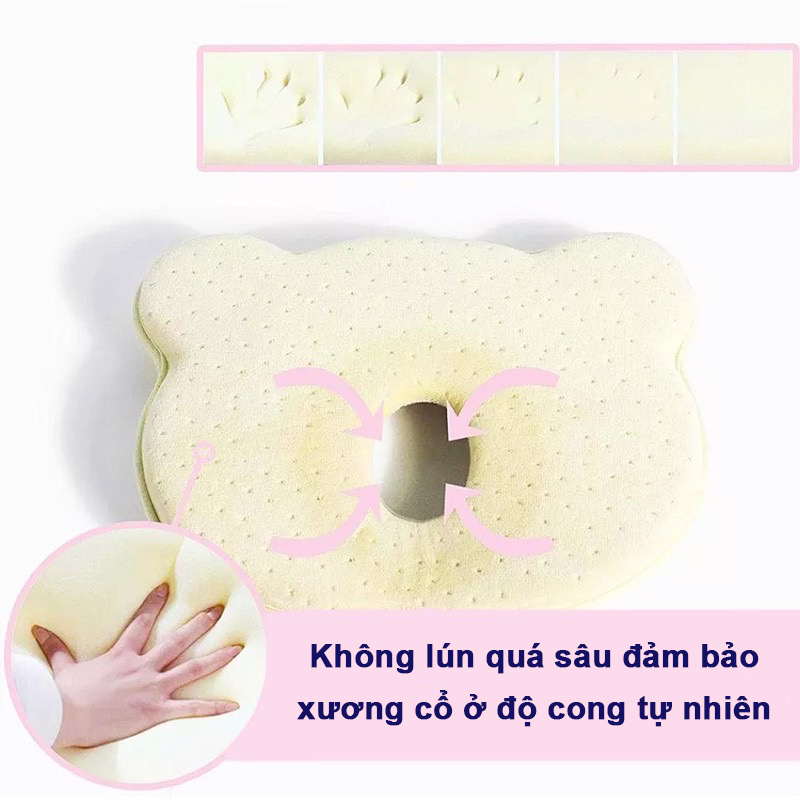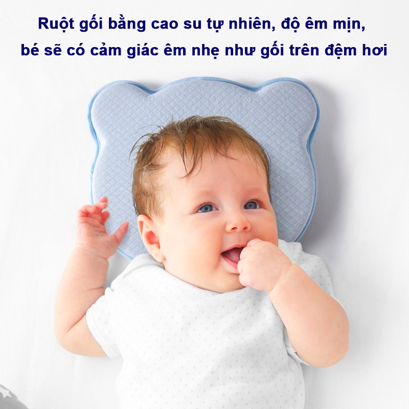 Gối cao su non cho bé, Gối cho bé sơ sinh chống méo đầu hình gấu loại cao cấp an toàn cho sự phát triển của bé