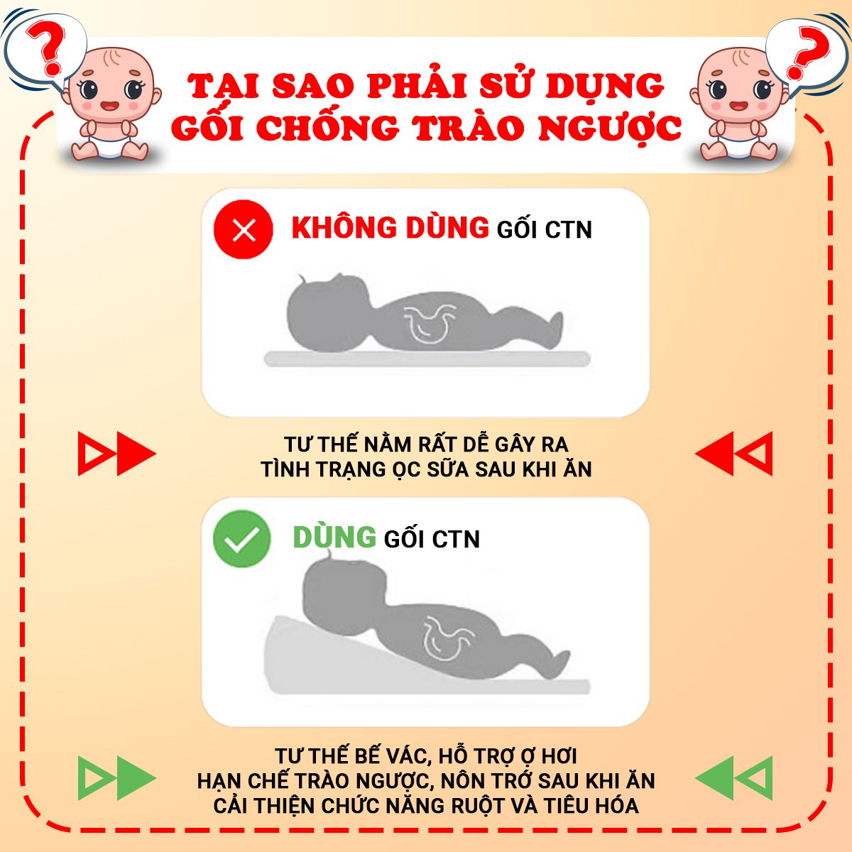 - Để chống trào ngược, hạn chế tình trạng nôn trớ, ọc sữa: