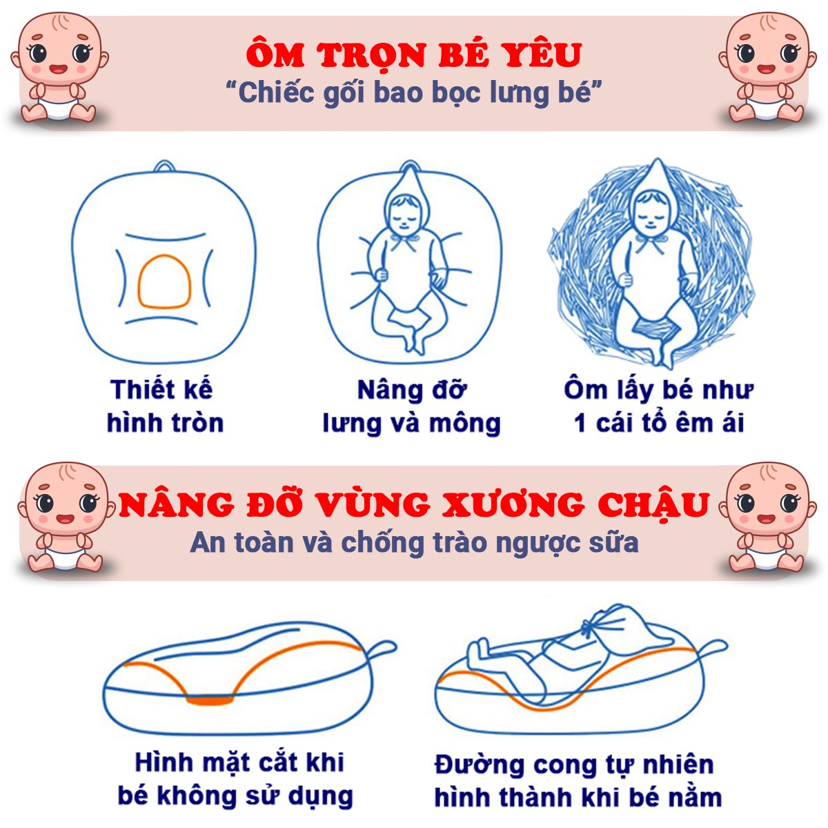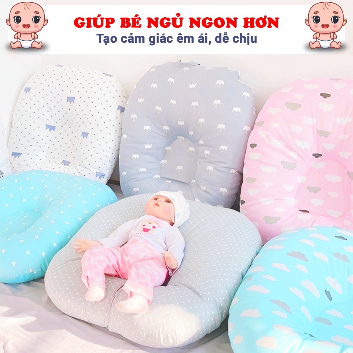 - Hỗ trợ tư thế nằm giúp bé dễ thở khi sổ mũi, nghẹt mũi, viêm phổi...