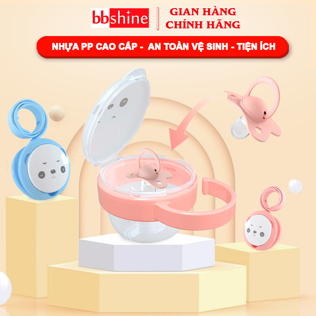 Hộp đựng ti giả, Dây đeo ti giả trong suốt chất liệu nhựa cao cấp tiện lợi an toàn cho bé yêu