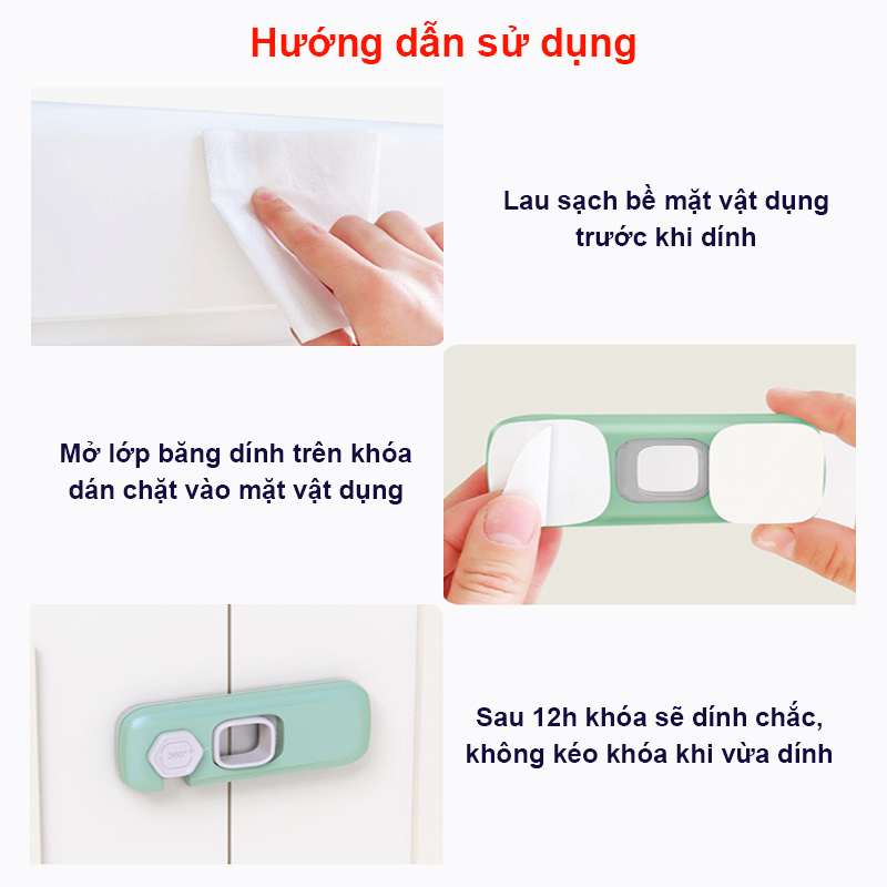 LƯU Ý: Để sử dụng khóa được chắc chắn hơn, bạn nên vệ sinh nơi cần khóa trước khi dán và đợi keo khô trong 30 phút - 1 tiếng