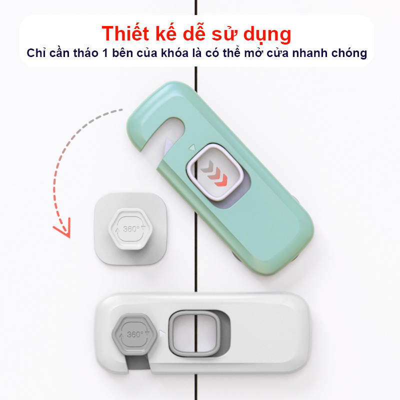 - Khóa tủ lạnh giúp khóa chặt cửa tủ, cửa ngăn kéo giúp bé không tự ý mở và nghịch các đồ vật bên trong, tránh được những vật sắc nhọn có thể làm tổn thương bé