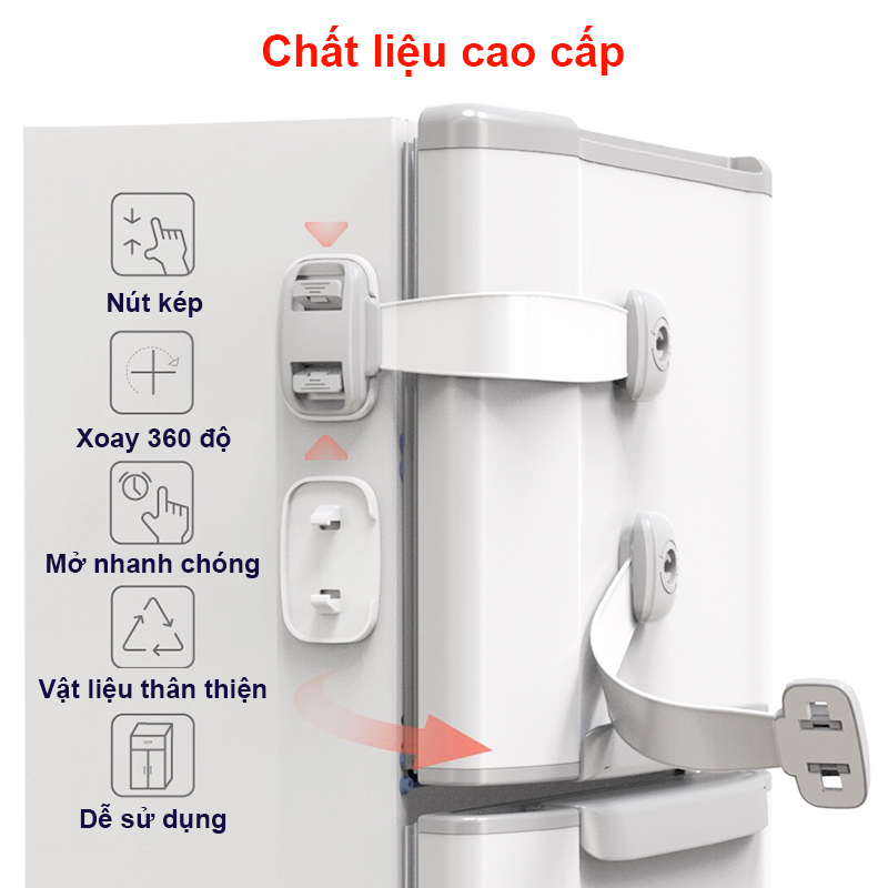 - Khóa tủ lạnh được làm từ nhựa ABS, không chứa BPA an toàn cho sức khỏe của bé