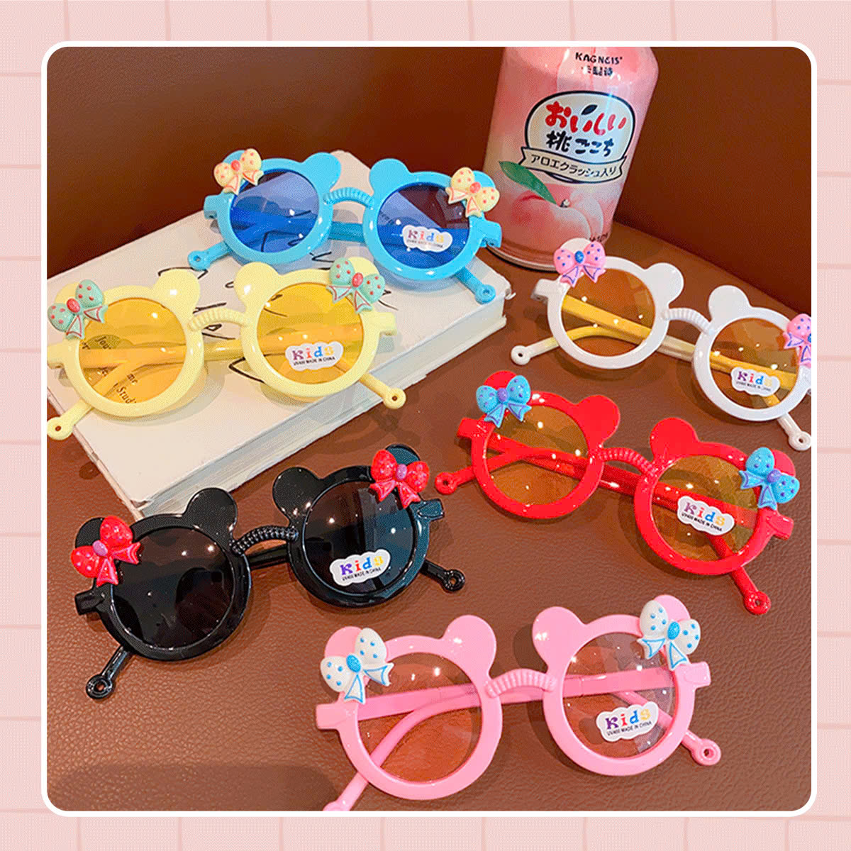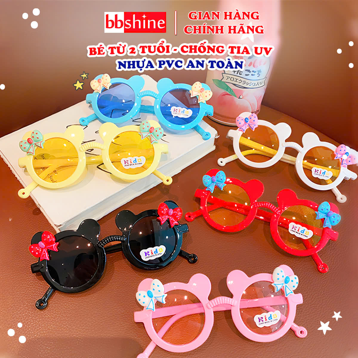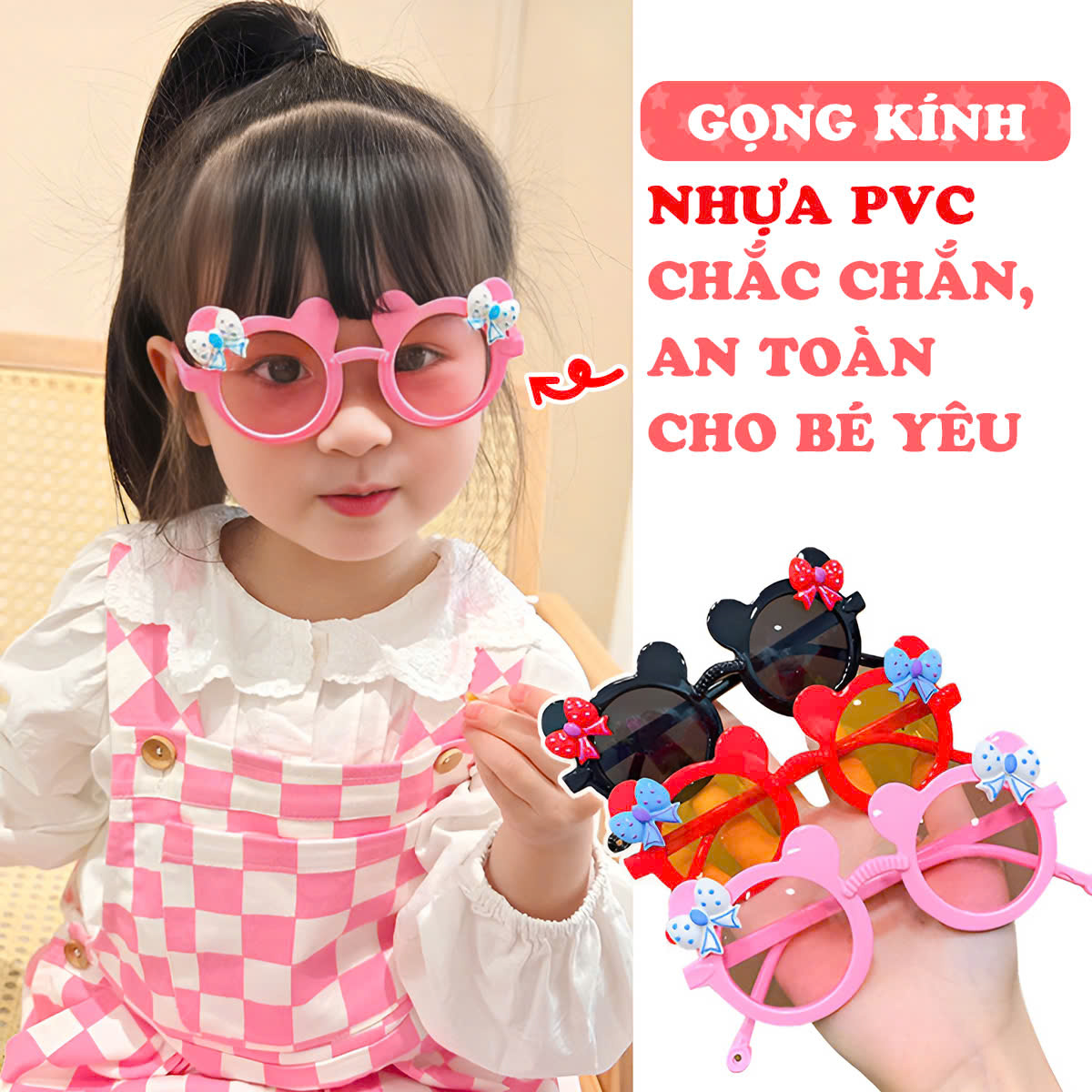 - Gọng kính được làm từ chất liệu nhựa PVC chắc chắn, an toàn cho bé yêu