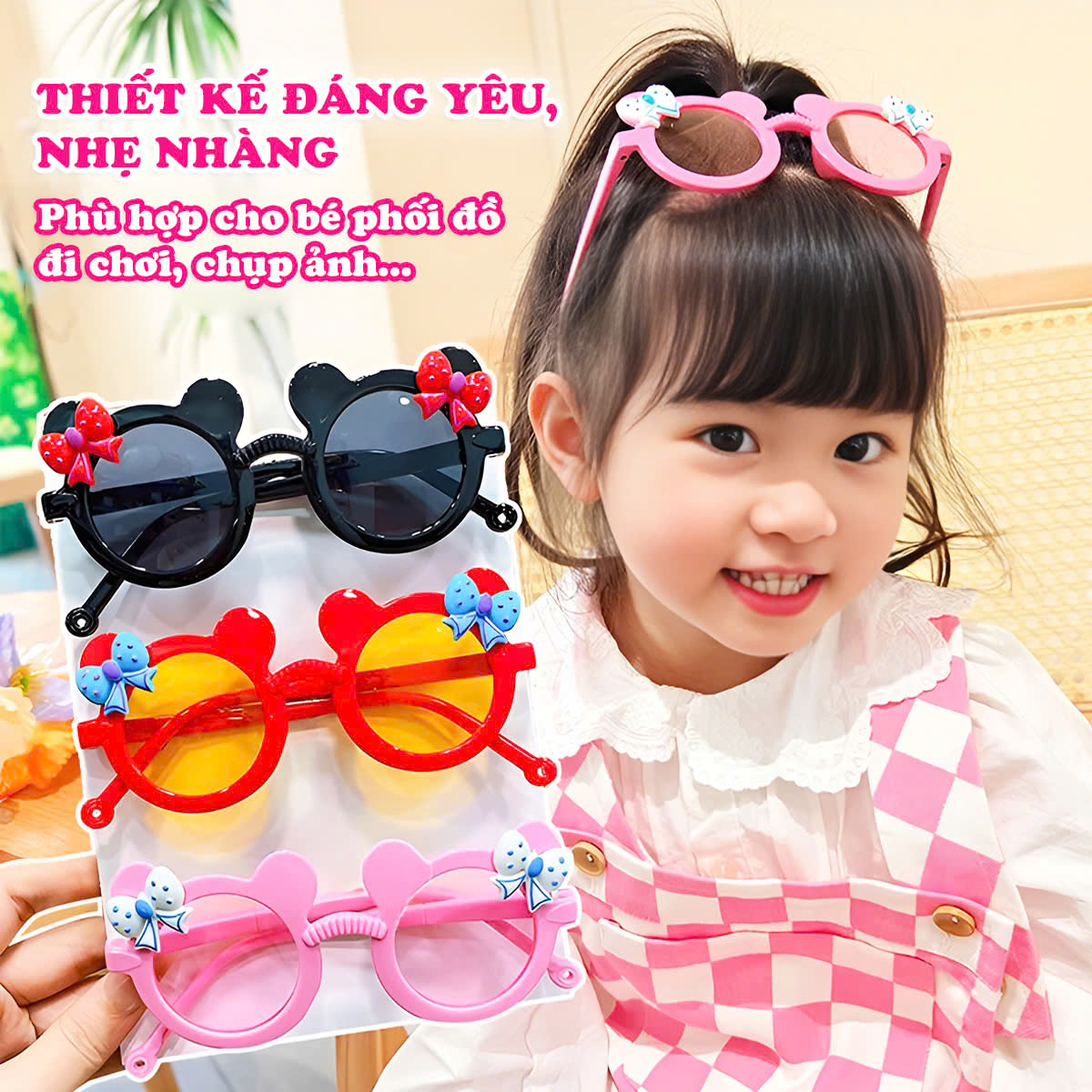 Kính cho bé là phụ kiện thời trang phổ biến cho các bé gái, chỉ cần mix thêm một chiếc kính thì set đồ của bé sẽ trở nên nổi bật