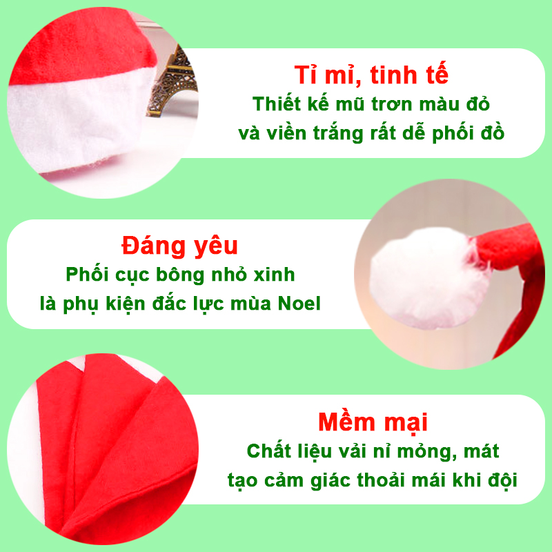 Mũ Noel, Nón Noel cho bé 0-12 tuổi họa tiết trơn đơn giản vô cùng xinh xắn phù hợp để đi chơi chụp ảnh Noel cực dễ thương
