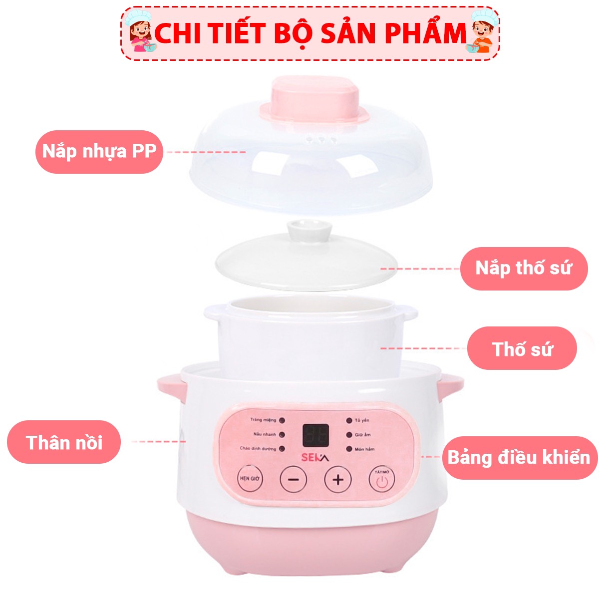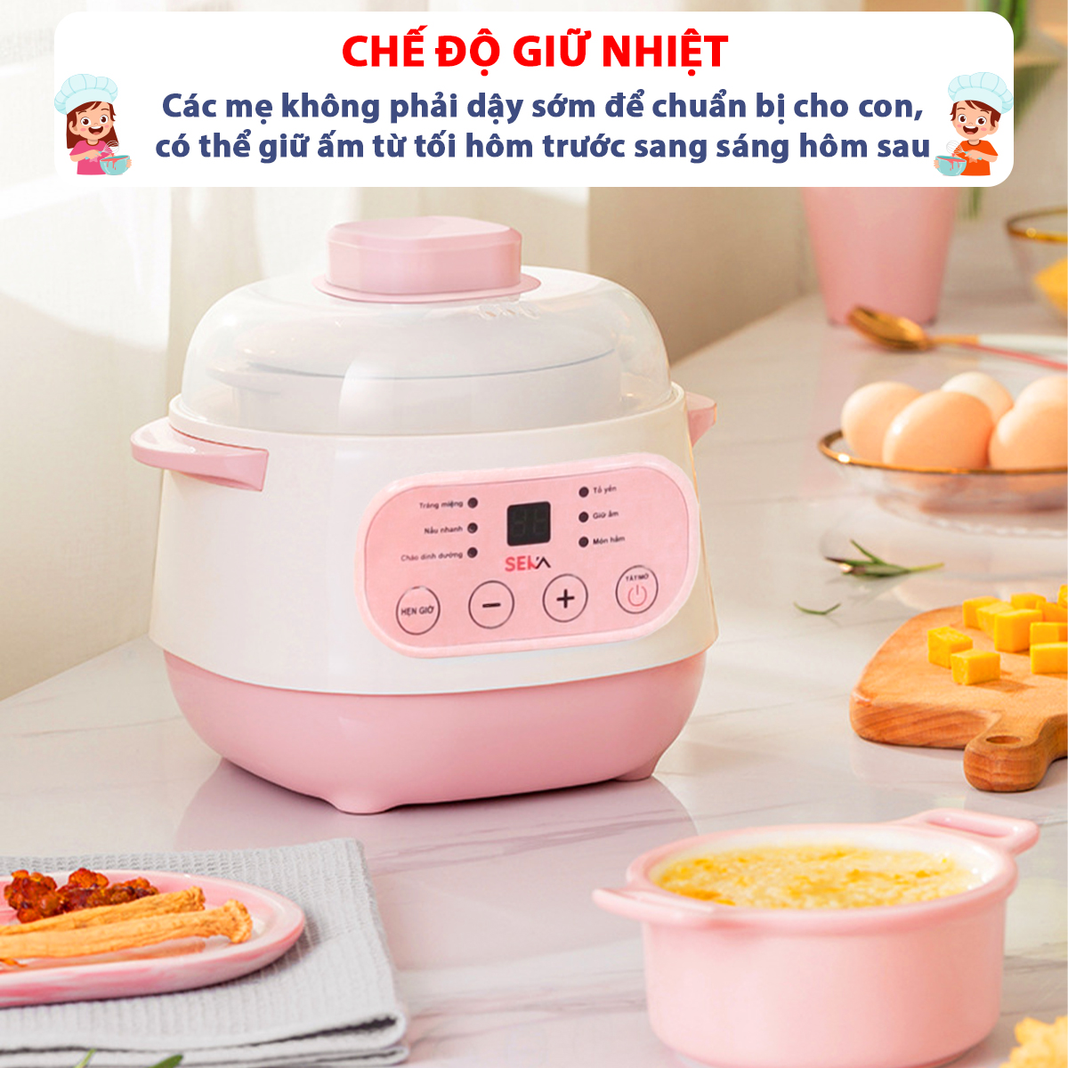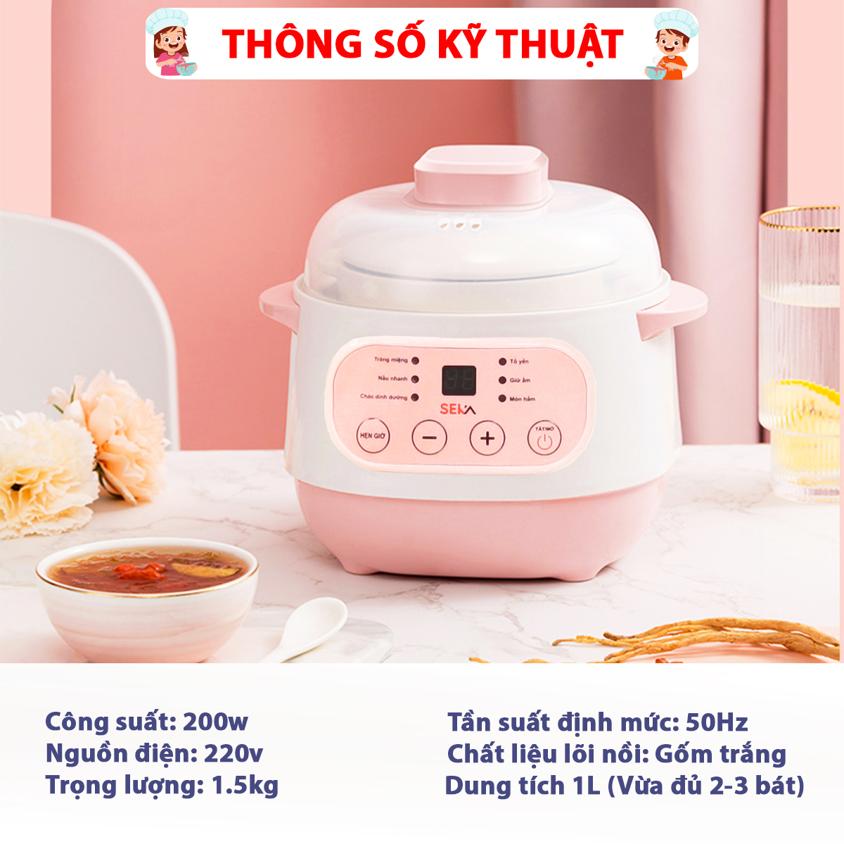 Nồi nấu chậm, Nồi chưng yến cho bé Seka chính hãng cao cấp dung tích 1L đa năng và tiện lợi