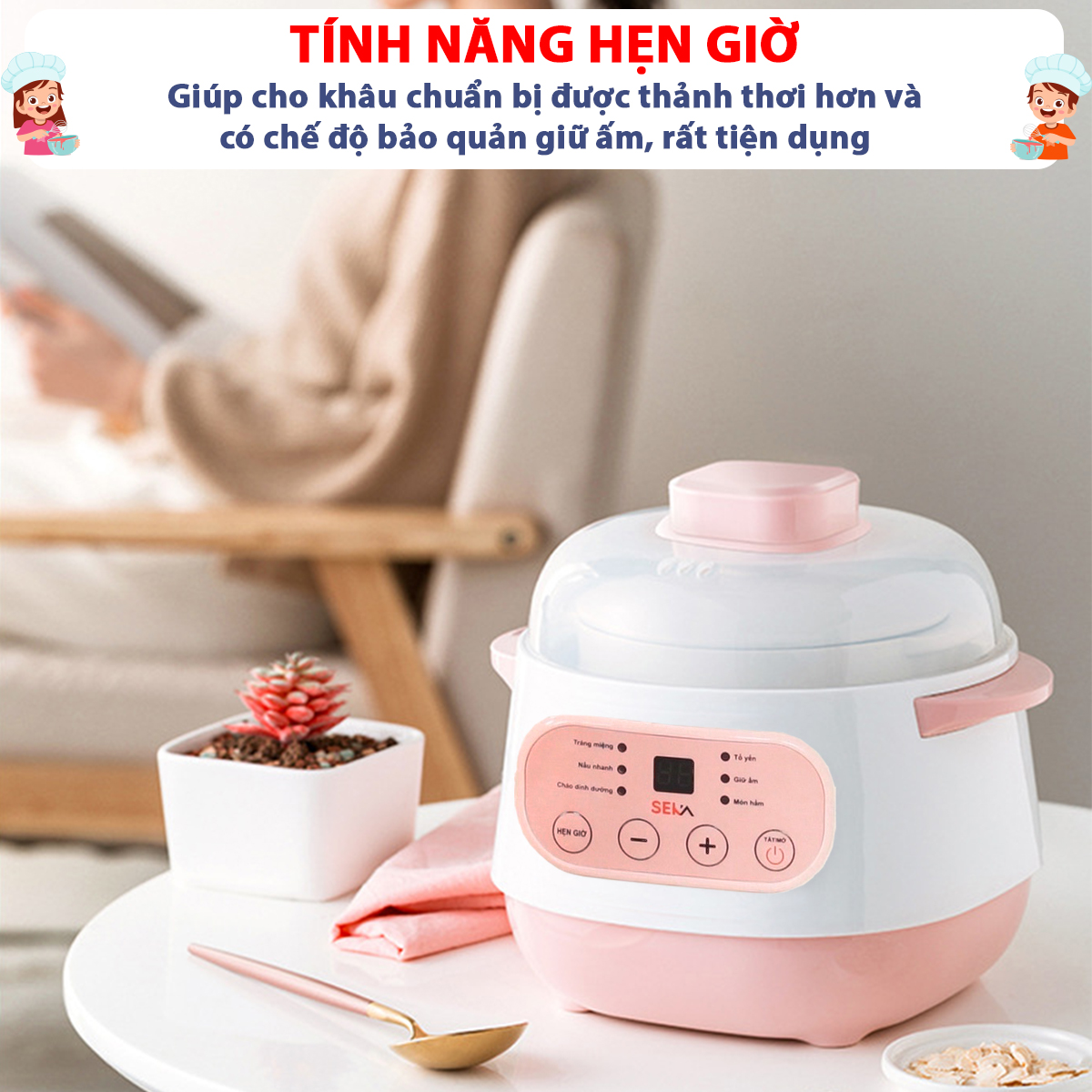 - Hẹn giờ: Chuẩn bị bữa ăn thảnh thơi hơn, nấu tối hôm trước ăn sáng hôm sau hoặc nấu sáng ăn tối