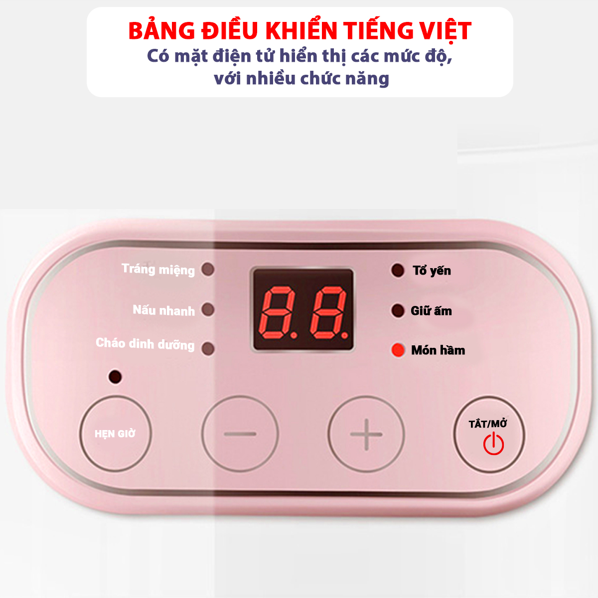 - Có 6 chức năng: Hấp, hầm canh, nấu cháo, chưng yến, súp chè, giữ ấm