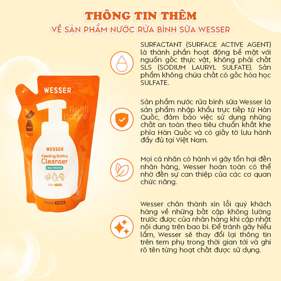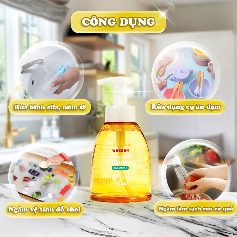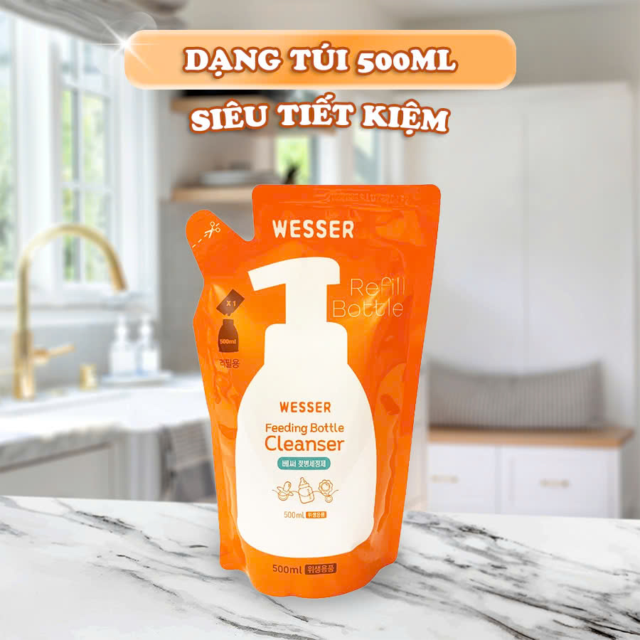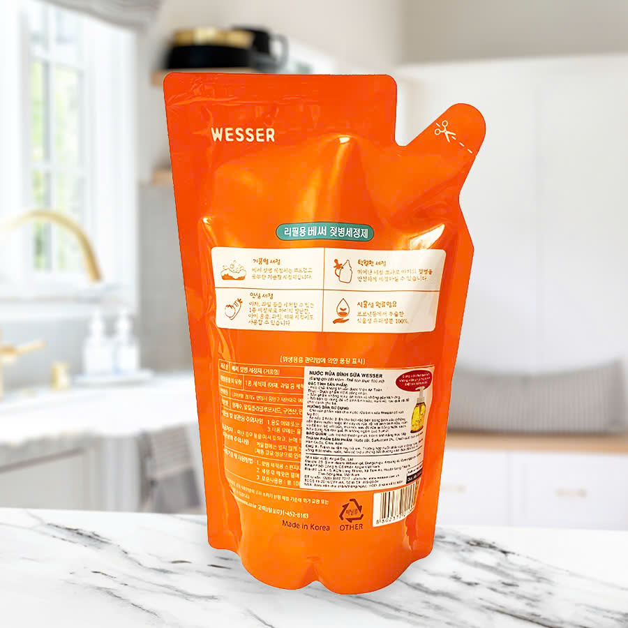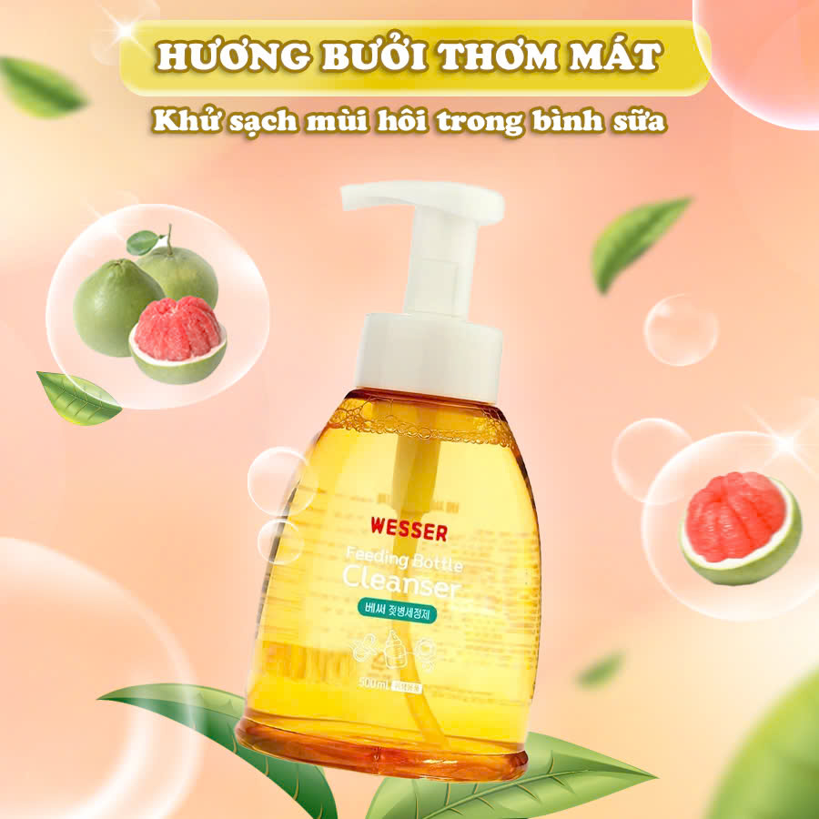 Nước rửa bình sữa Wesser nhập khẩu Hàn Quốc dung tích 500ml siêu tiện lợi