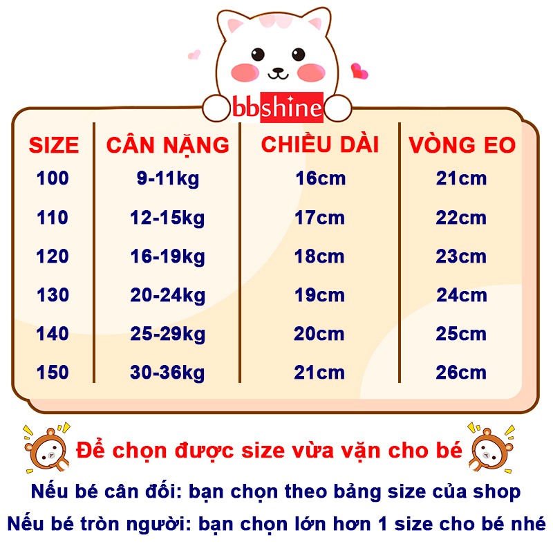 SIZE – CÂN NẶNG – VÒNG EO – CHIỀU DÀI QUẦN – CHIỀU CAO TƯƠNG ỨNG