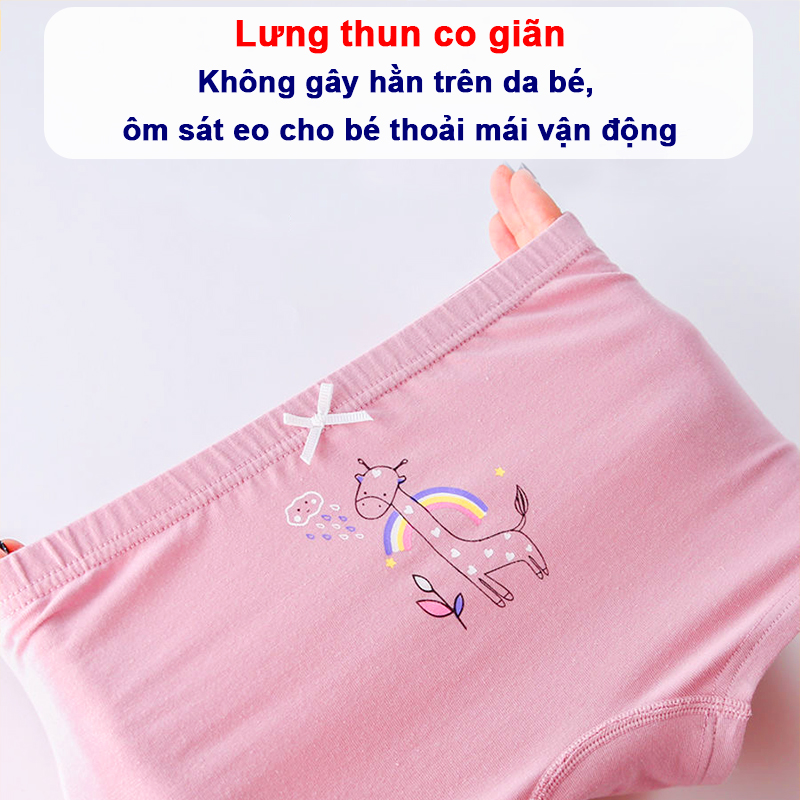- Quần chip bé gái có chun quần co giãn, không gây hằn trên da bé, ôm vừa vặn lấy cơ thể bé mà không lo bị tuột khi bé chạy nhảy