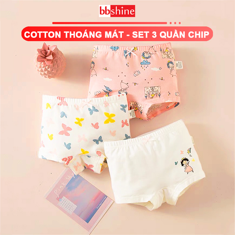 Quần chip bé gái, Set 3 quần chip đùi bé gái mềm mịn cao cấp họa tiết đáng yêu phù hợp cho bé mặc đi học cả ngày, mặc ngủ...