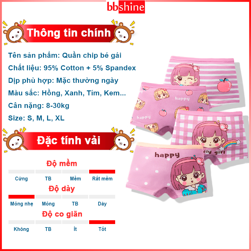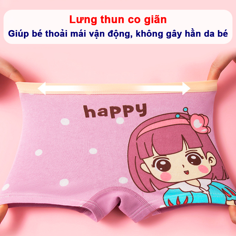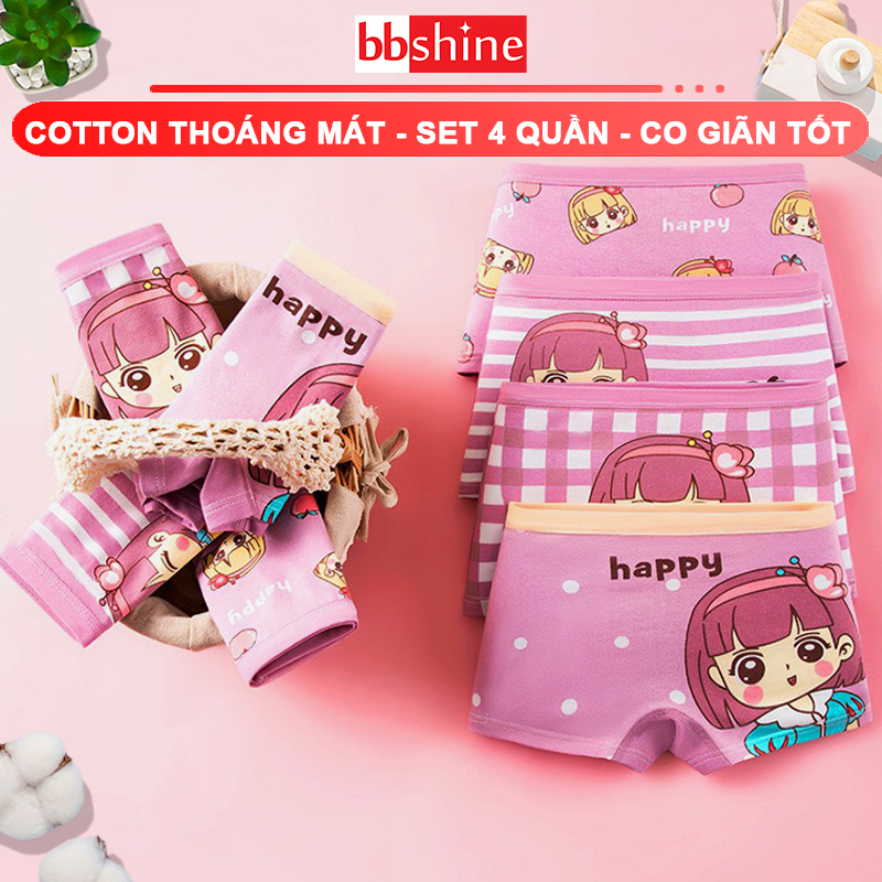 Quần chip bé gái, Set 4 quần chip đùi bé gái chất cotton cao cấp họa tiết đáng yêu phù hợp cho bé mặc đi học cả ngày, mặc ngủ...