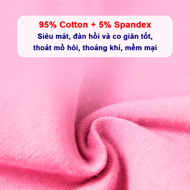 - Được làm từ 95% Cotton siêu mát + 5% Spandex (chất liệu siêu đàn hồi) giúp co giãn tối đa, thoát mồ hôi, thoáng khí và mềm mại